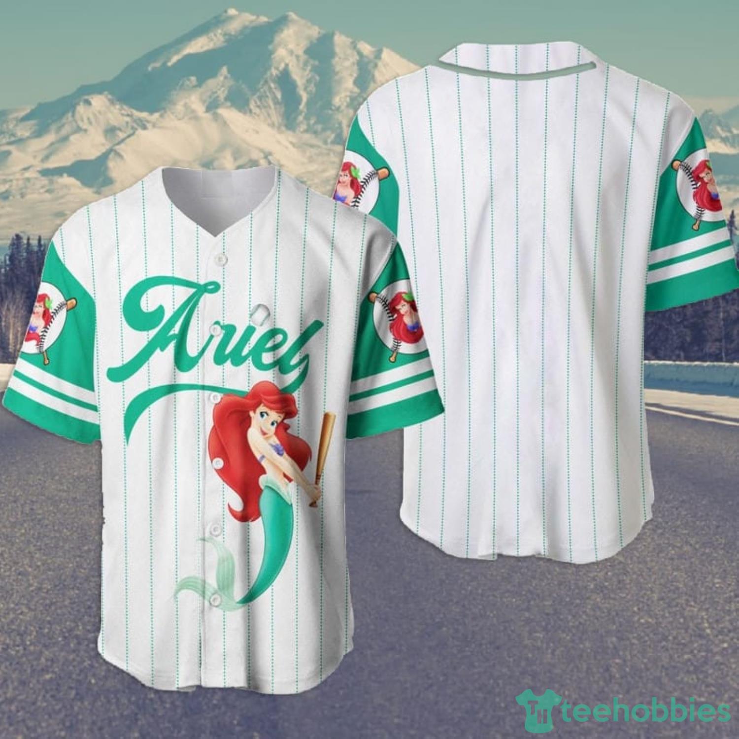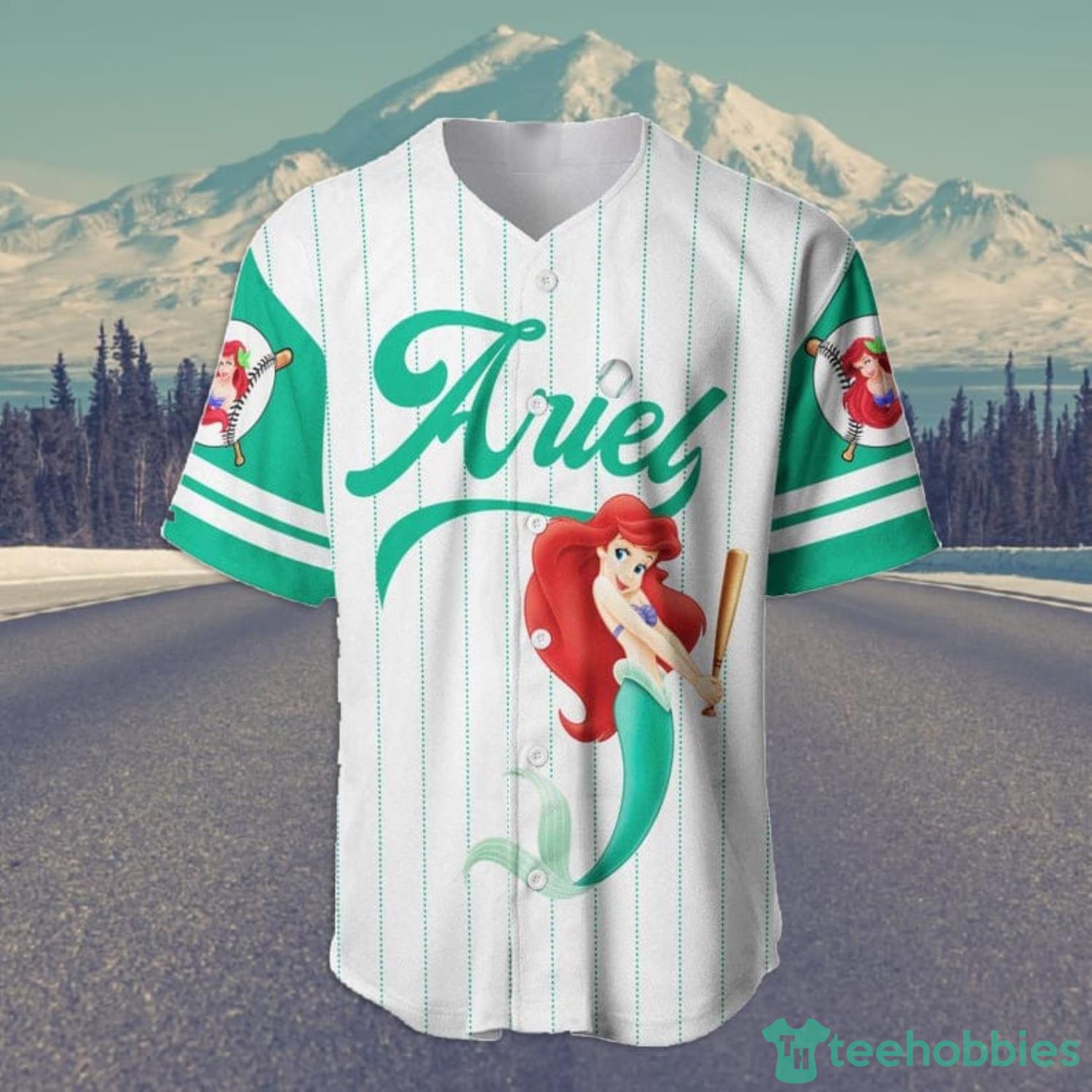 Some of the Ariel Princess The Little Mermaid Cartoon Lover All Over Print Pinstripe Baseball Jersey Shirt White photos