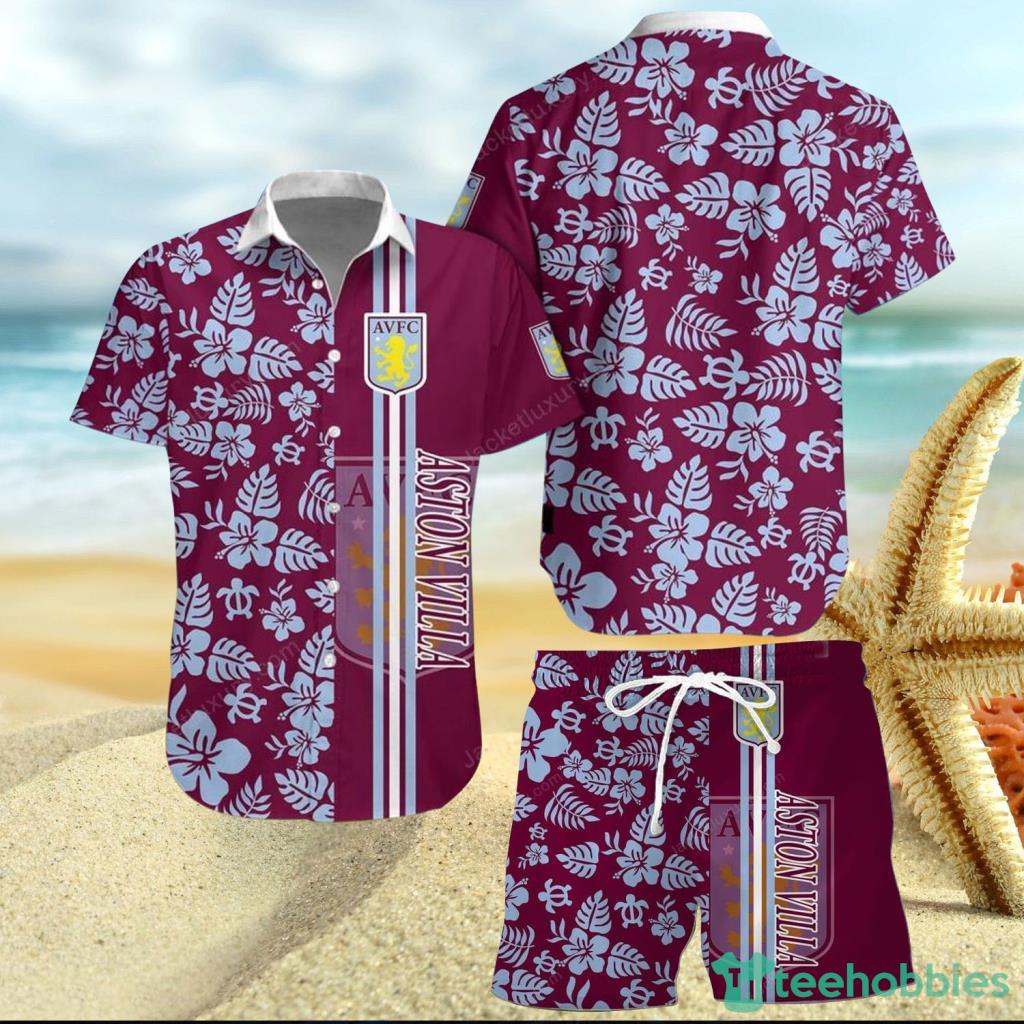 Some of the Aston Villa FC Blue Purple Tropical Hawaiian Shirt And Short photos