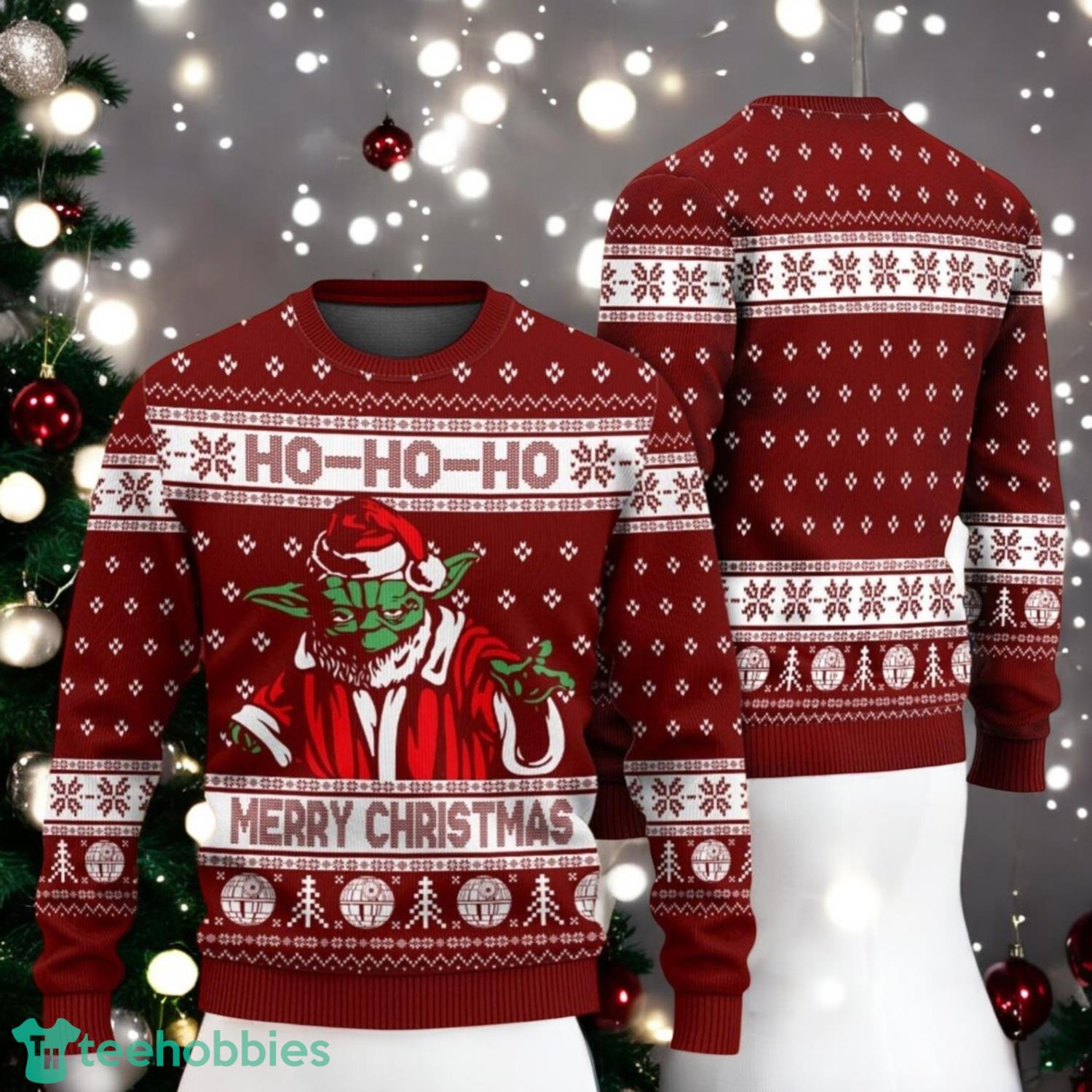 Baby Yoda Ho Ho Ho Merry Christmas Sweater Star Wars Ugly Sweater