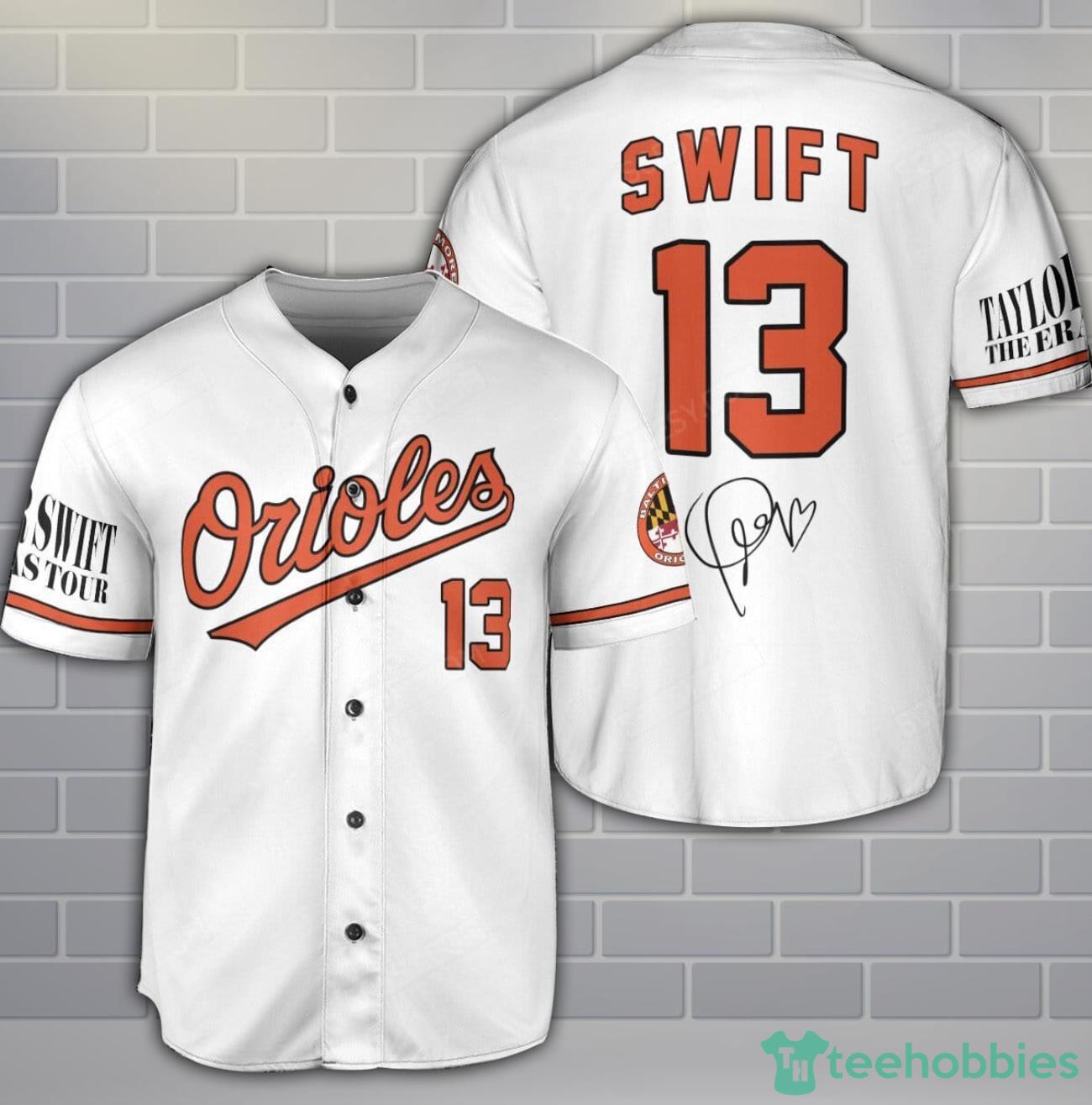 Show your support for both the Baltimore Orioles and Taylor Swift with this custom baseball jersey shirt! Made for true fans, this jersey allows you to personalize it with your name and favorite number. Whether you’re at the game or just out and about, this shirt is sure to turn heads and show off your love for both the team and the pop sensation. Get yours today and stand out from the crowd in style!