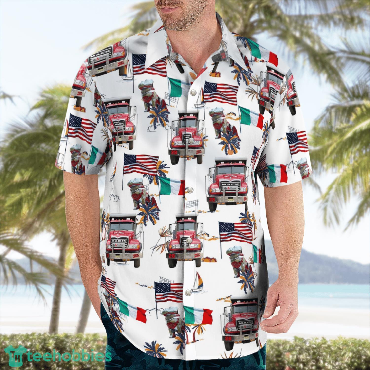 Crafted from high-quality materials, this shirt is incredibly comfortable and lightweight, making it ideal for those hot summer days. The breathable fabric ensures that you stay cool and comfortable even in the hottest of temperatures. The shirt features a classic Hawaiian print with a big rig truck and palm trees, which adds a fun and playful element to your look.