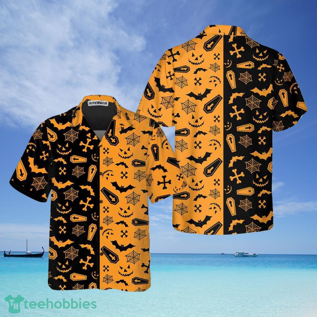 Some of the Black And Orange Spooky Halloween Hawaiian Shirt photos
