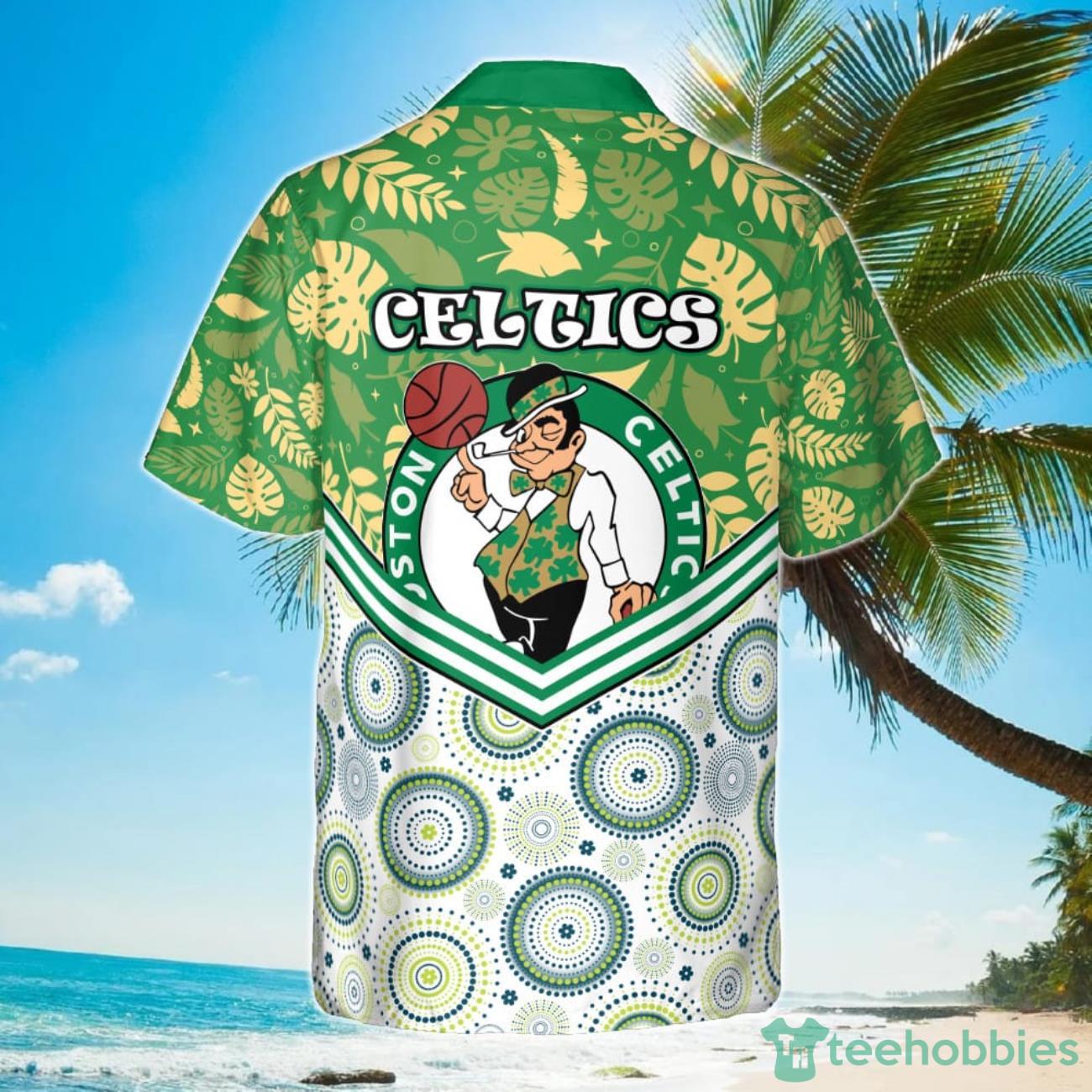 Featuring a stunning floral pattern in shades of green and white, this shirt is a must-have for any true Celtics fan. The iconic Celtics logo is prominently displayed on the front, ensuring that everyone knows where your allegiance lies.