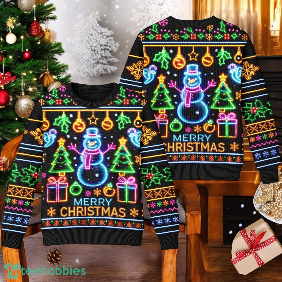 Bright Neon Lighting Ugly Christmas Sweater Xmas 3D Sweater Christmas Gift Idea