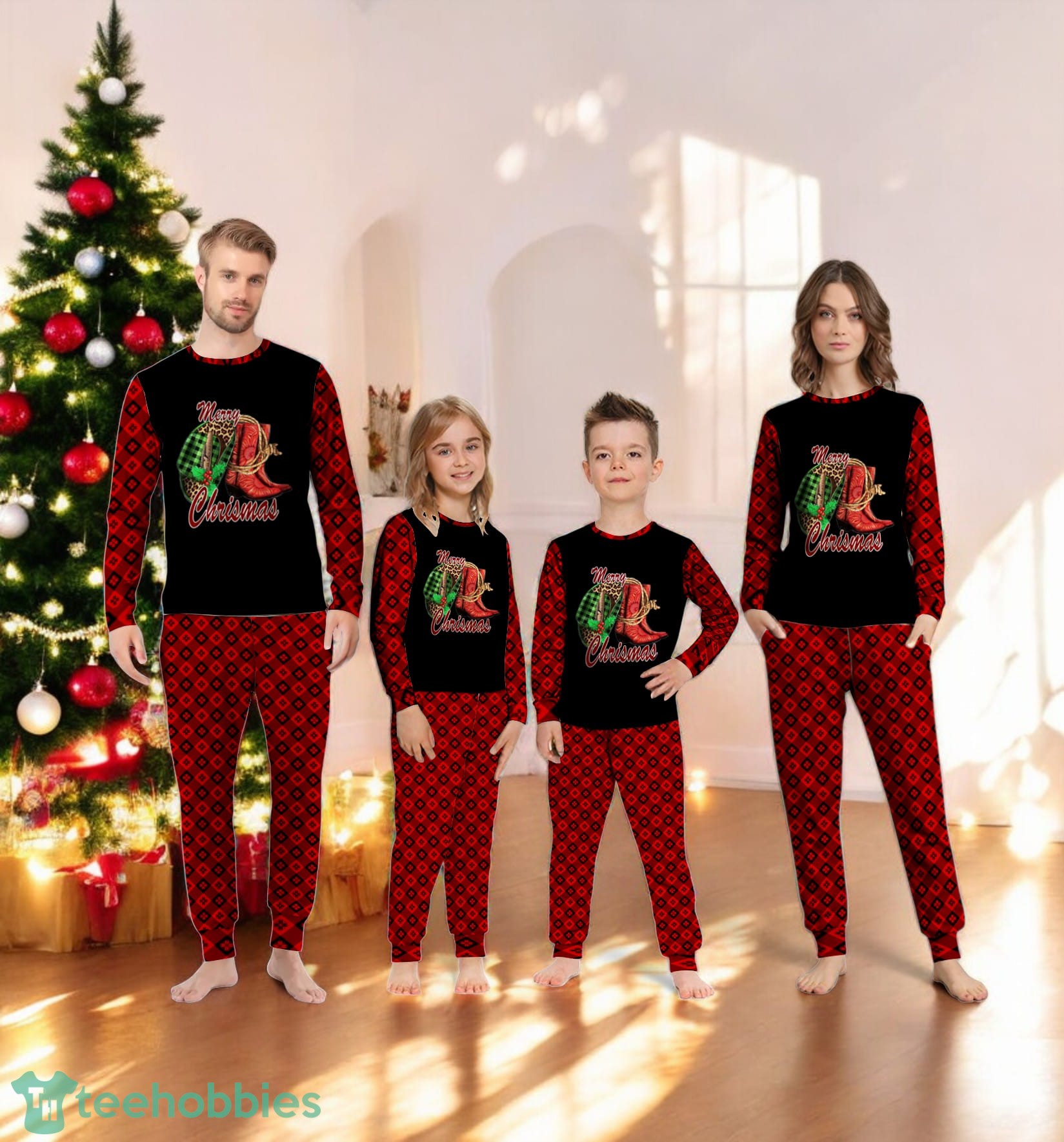 Be the first to review “Buffalo Plaid Howdy Hat Cowboy Boots Merry Christmas Cowgirl Family Matching Pajama Set”