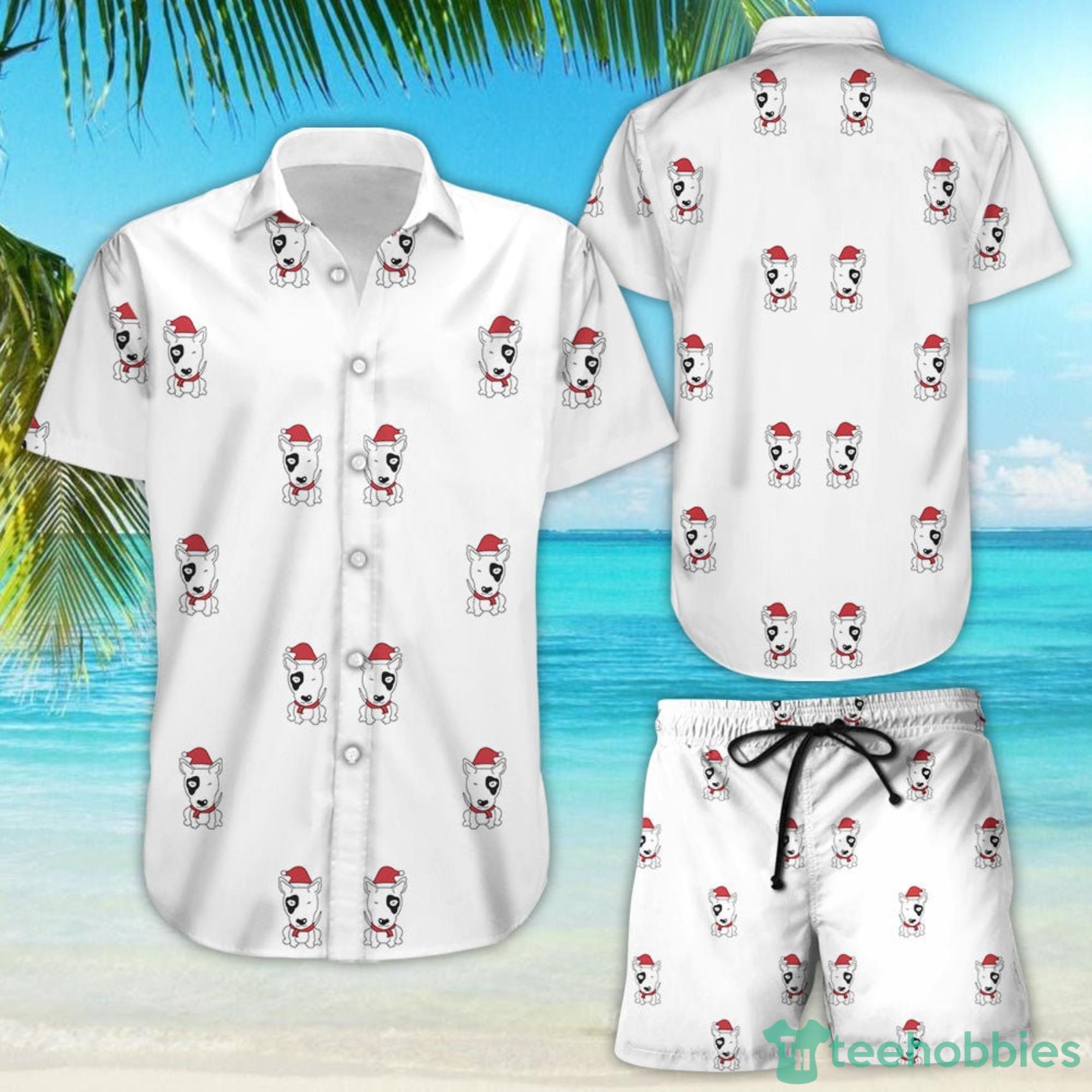 Some of the Bull Terrier Cute Bull Terrier With Hat Santa Print Hawaii Shirt And Short photos