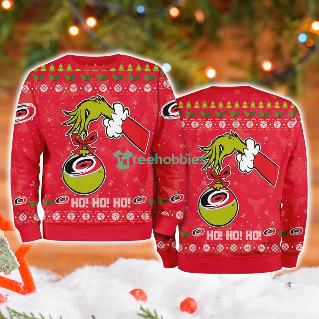 Carolina Hurricanes Grinch Hand Ugly Christmas Sweater 3D