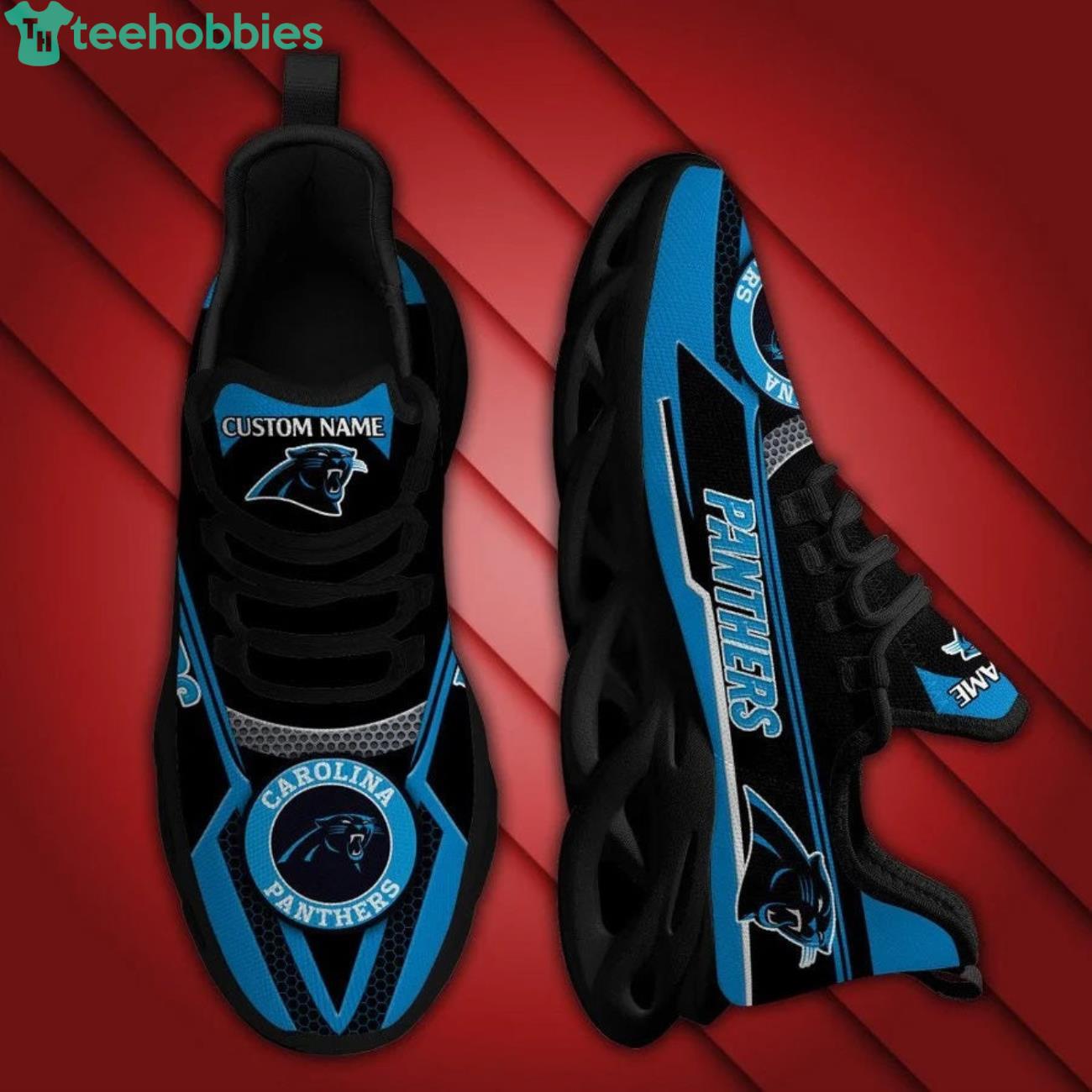 Introducing the Carolina Panthers Team Air Max Soul Shoes! These shoes are perfect for any professional athlete or fan. They have a sleek and professional look that will make you stand out in any crowd. They are made with highquality materials and features a durable construction that will last you many seasons of wear. Order your pair today and show your team pride!