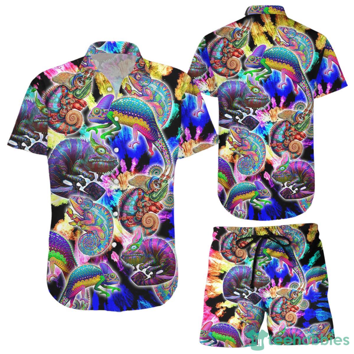 This design is available in a combo Hawaiian shirt & shorts. You can also get it separate. The default option is only one shirt or one pair of shorts. You have chosen a combo to get them both. This combo Chameleon Hawaiian Shirt Chameleon Colorful Tiedye Gifts For Chameleon Lovers is perfect to go to the beach. Get yours now or make a great gift.