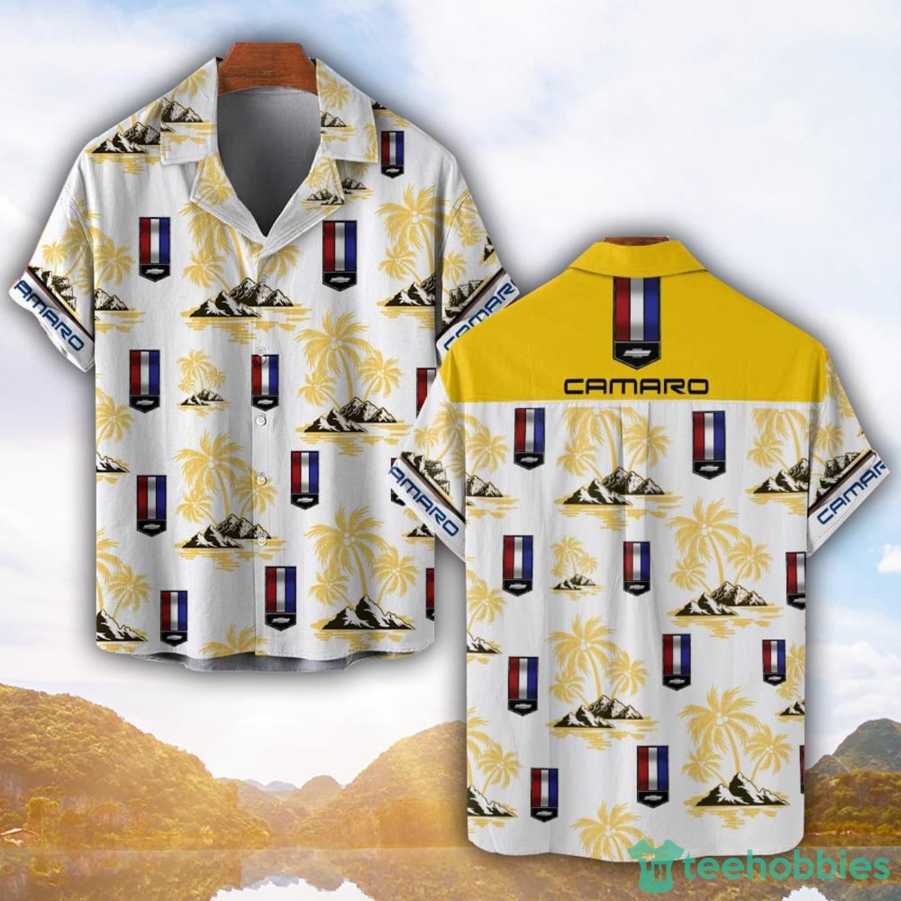 Chevrolet Camaro Yellow Coconut Pattern Combo 3D Hawaiian Shirt And Shorts Details: