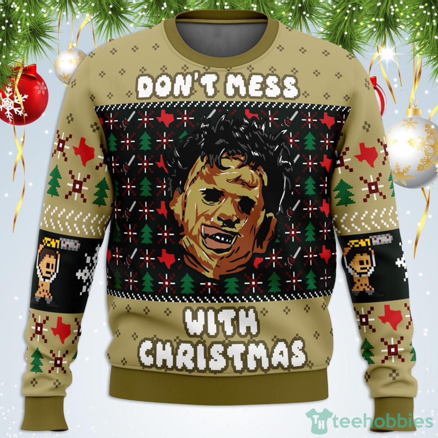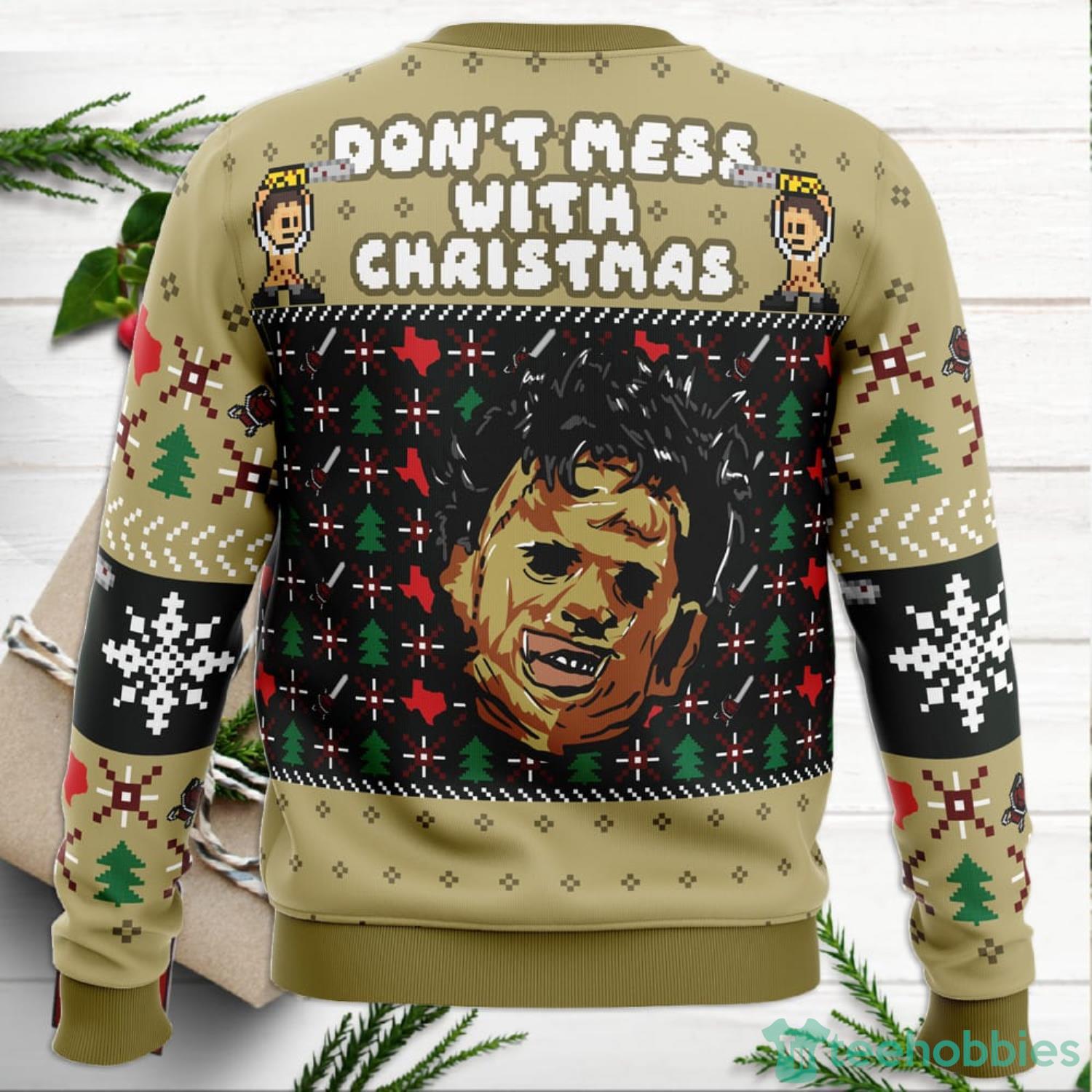 Looking for a unique and eye-catching Christmas sweater? Then check out our Christmas in Texas Leatherface Ugly Christmas Sweater! This one of a kind sweater is perfect for both men and women and is sure to get you noticed at any holiday party or gathering!