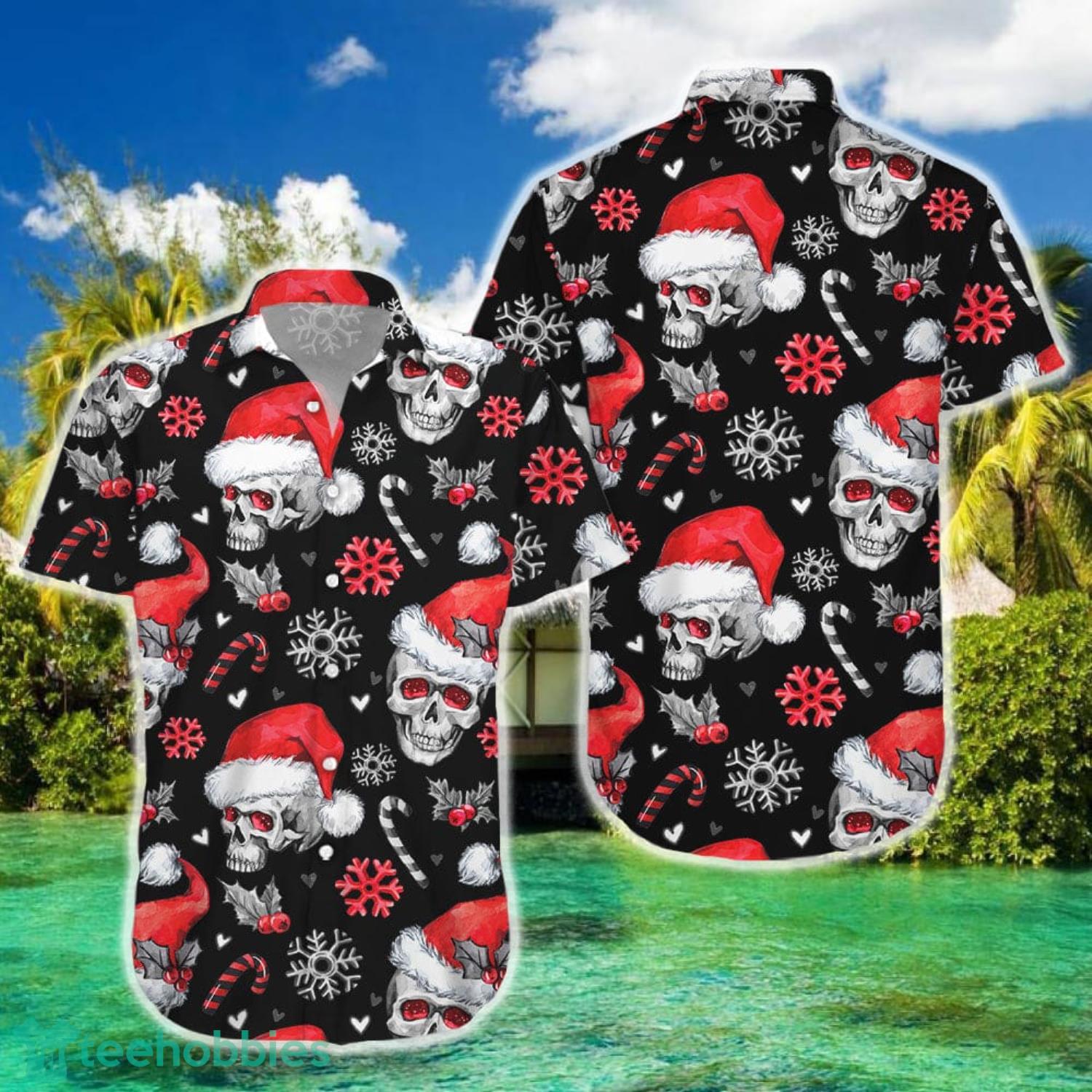 Introducing the Christmas Skull Santa Christmas Skulls With Candy Canes Aloha Shirt! This festive and unique shirt is perfect for anyone who wants to celebrate the holidays in style. The shirt features a skull and crossbones design with Santa hats and candy canes. The shirt is made of 100% polyester and is machine washable. The shirt is available in sizes S-3XL. Order your shirt today and be the talk of the holiday party!
