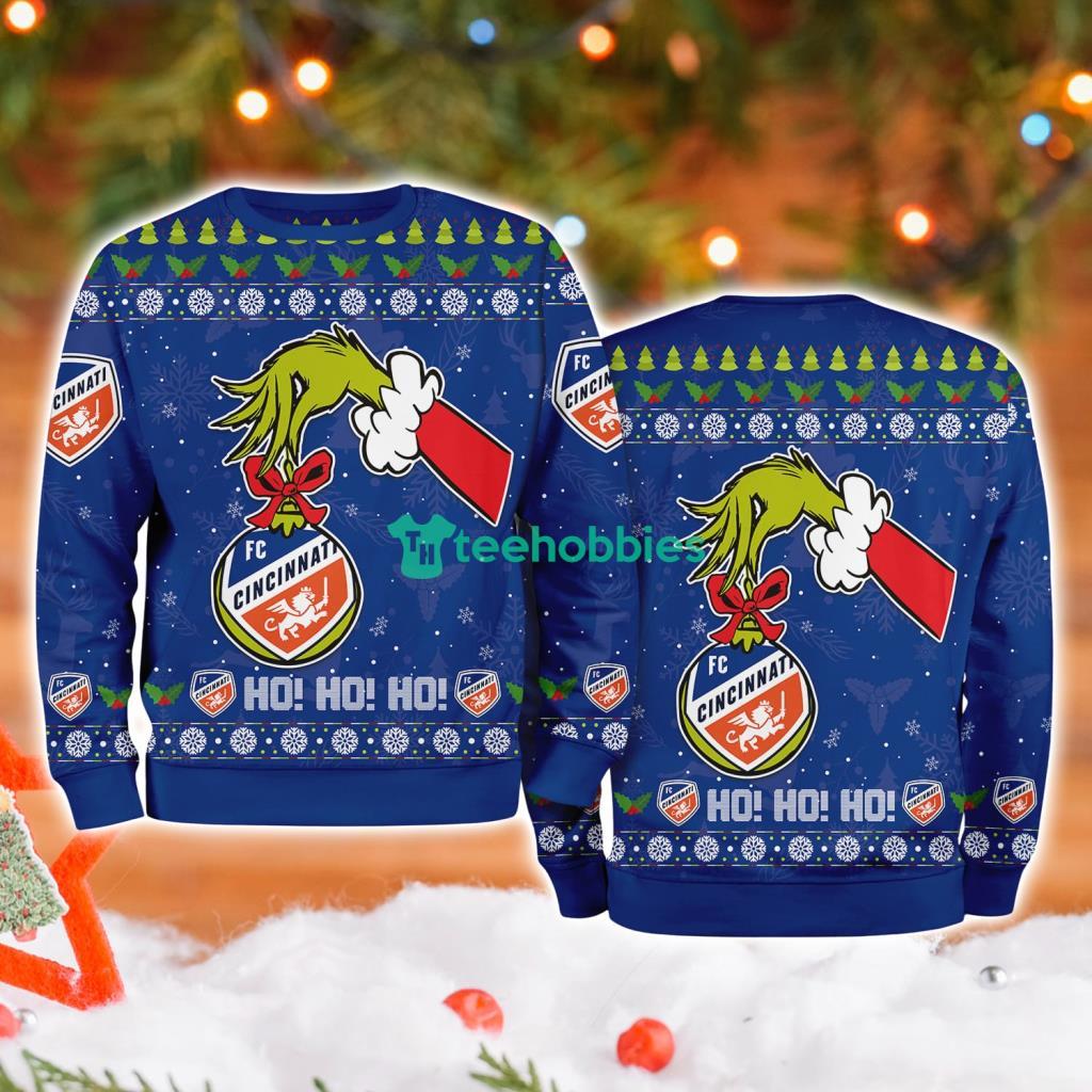 Embrace the Holiday Spirit with the Cincinnati Grinch Hand Ugly Christmas Sweater 3D
