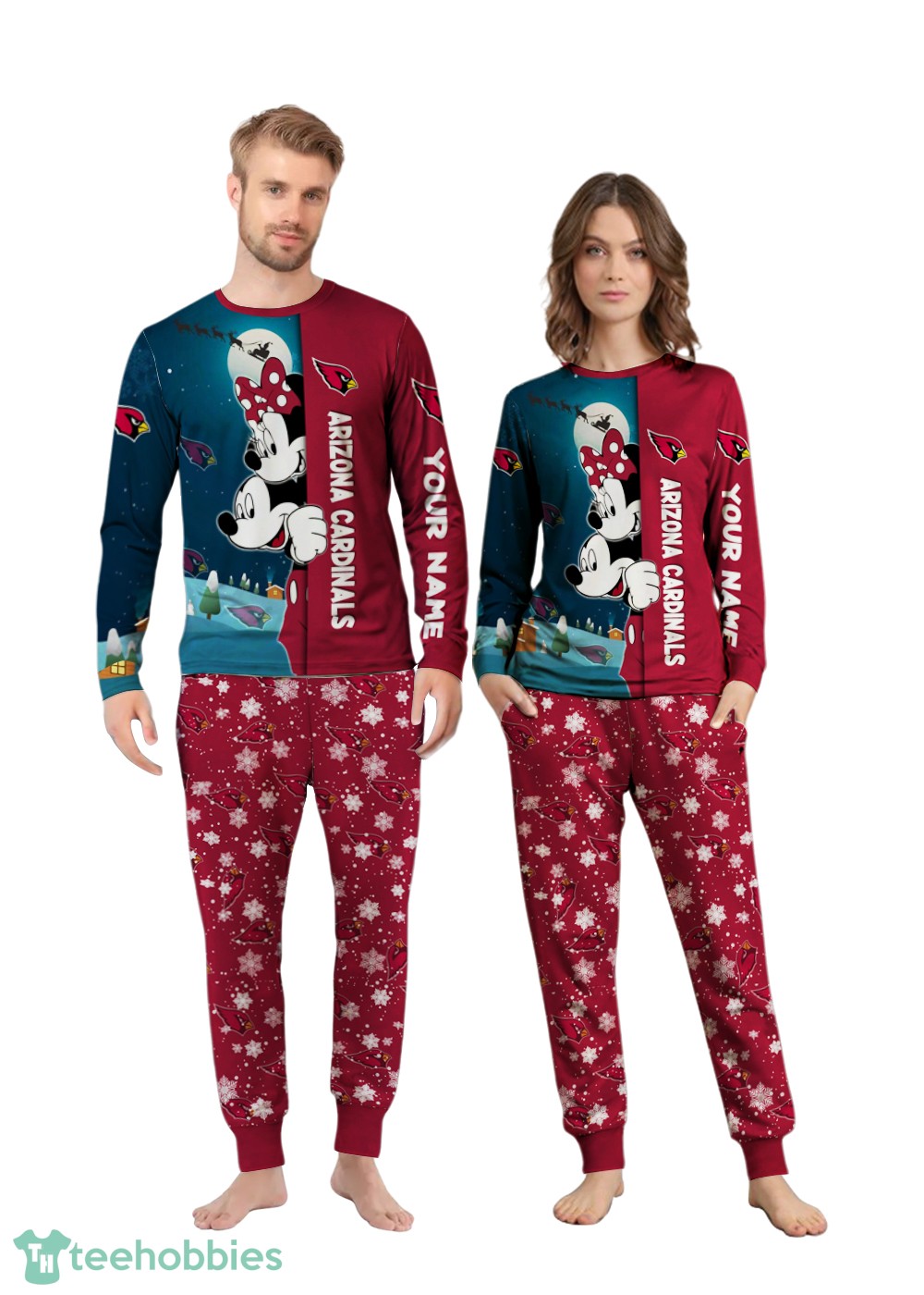 Order your Custom Name Arizona Cardinals Cartoon Mouse Couple Christmas Matching Pajamas Set today and make this Christmas extra special!