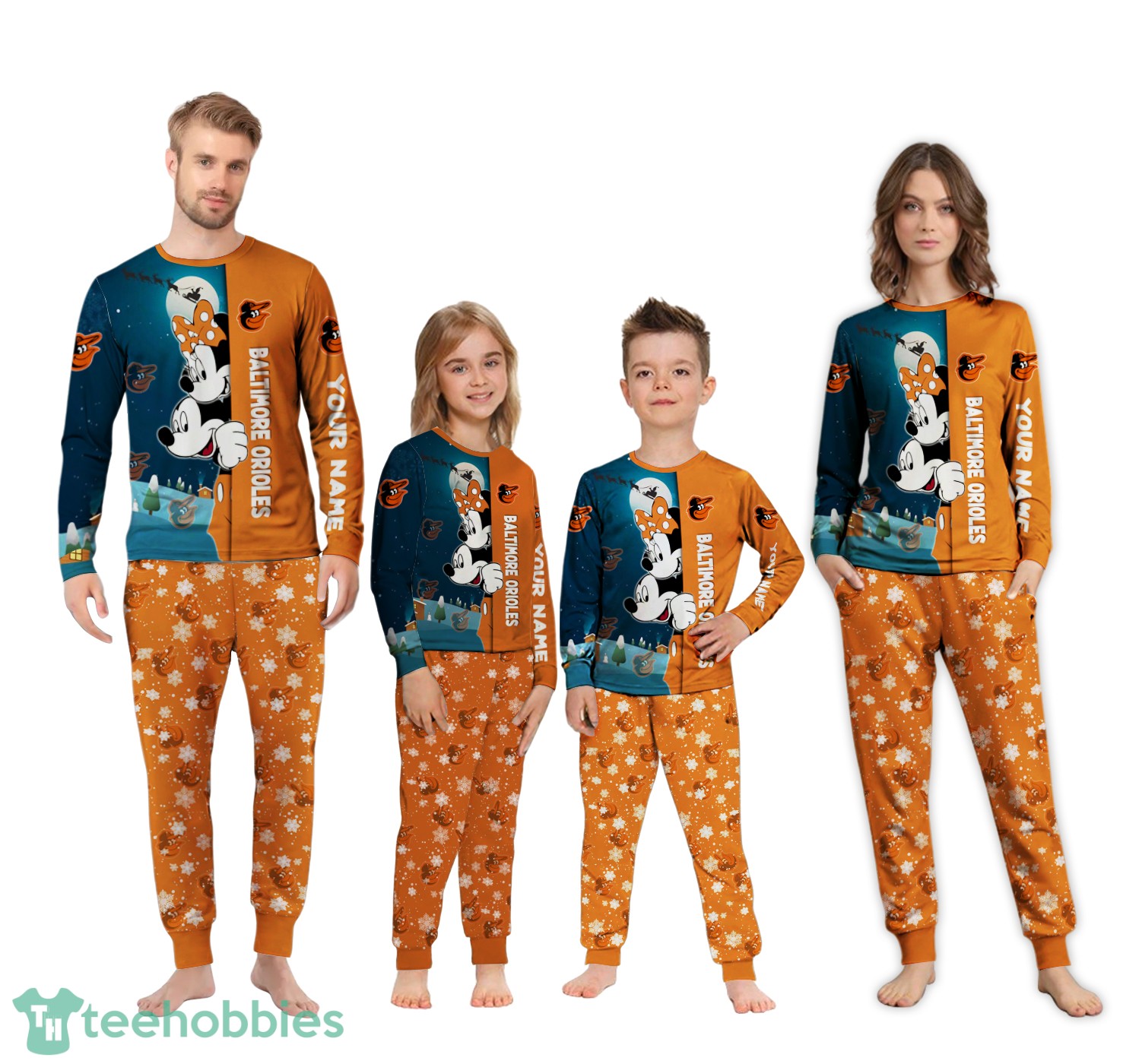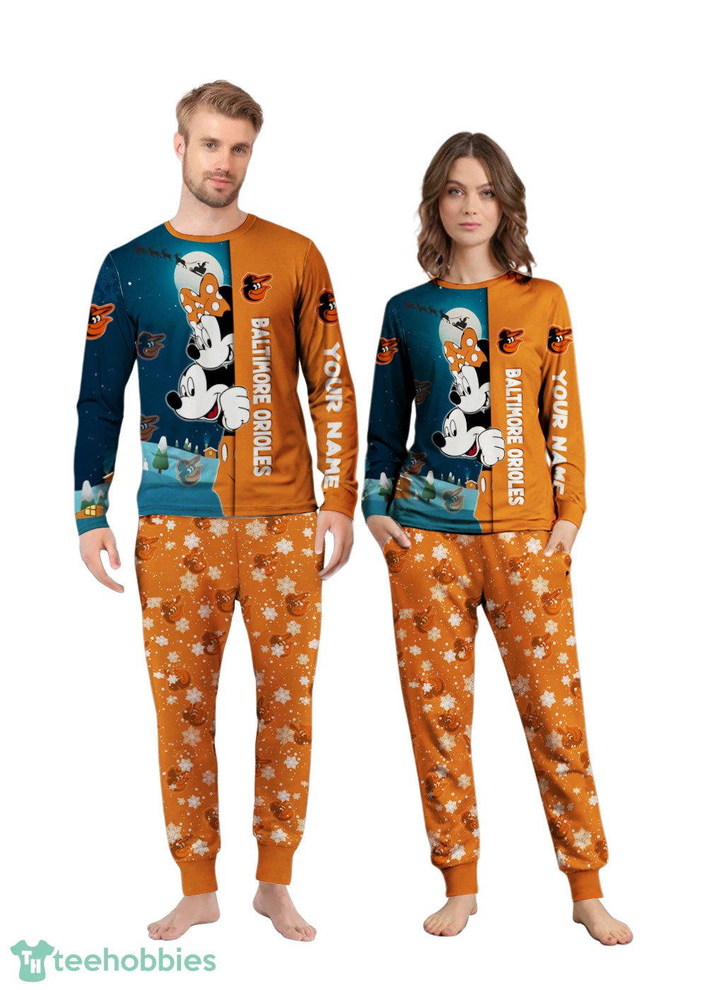Order your Custom Name Baltimore Orioles Cartoon Mouse Couple Christmas Matching Pajamas Set today and create lasting memories with your family!
