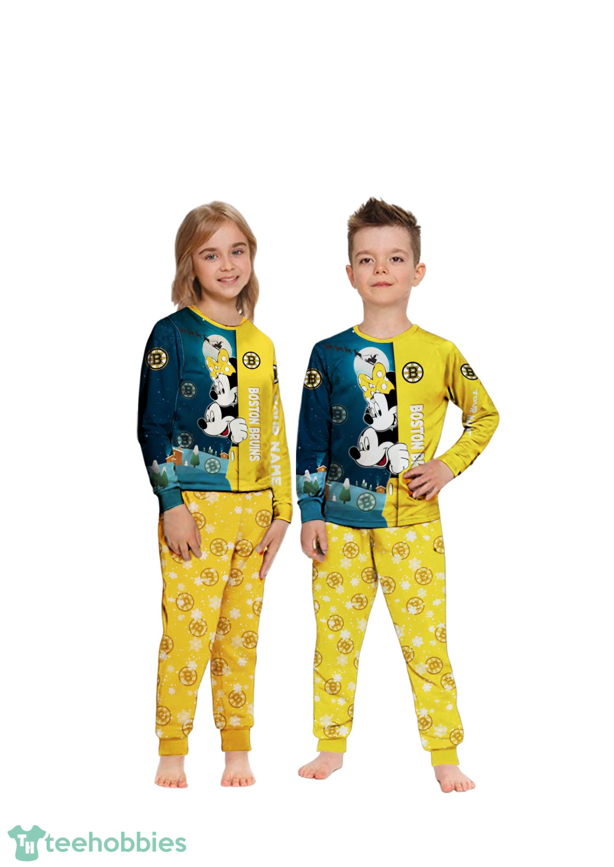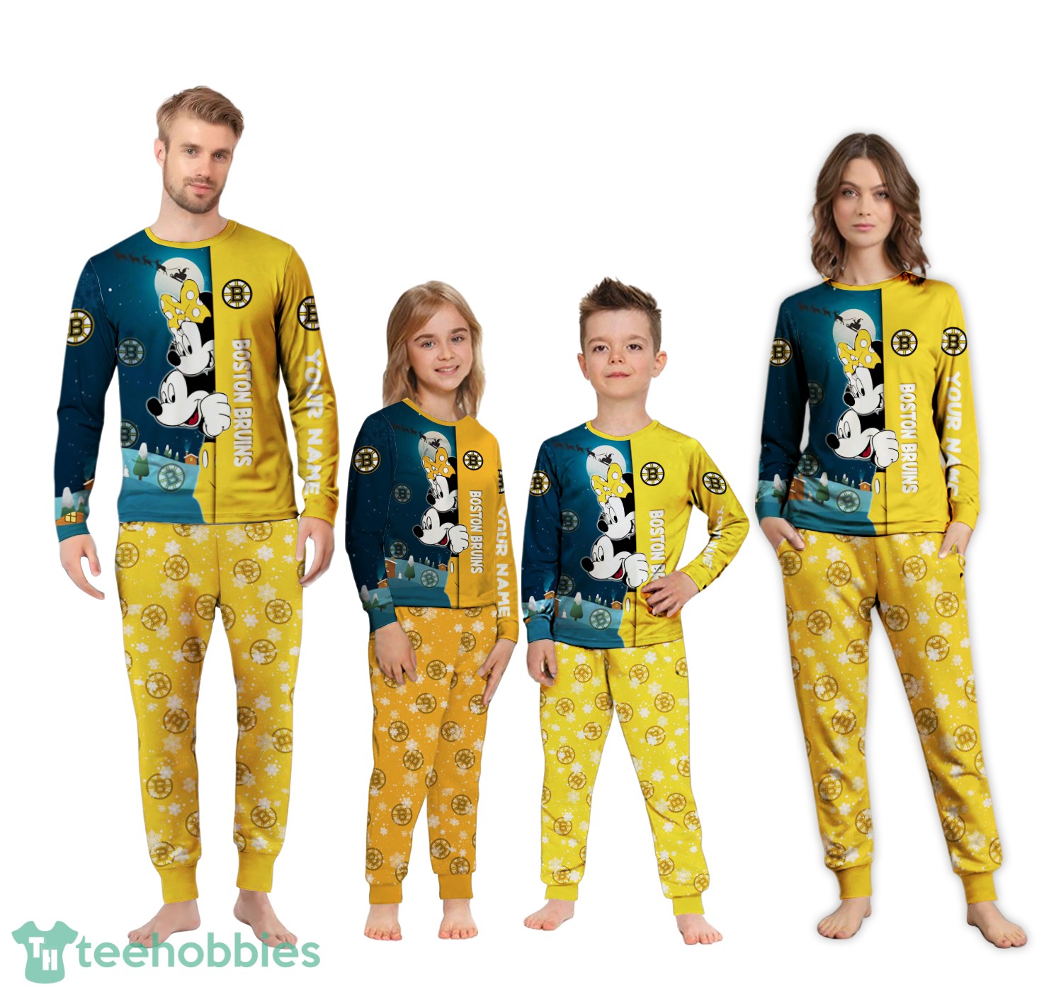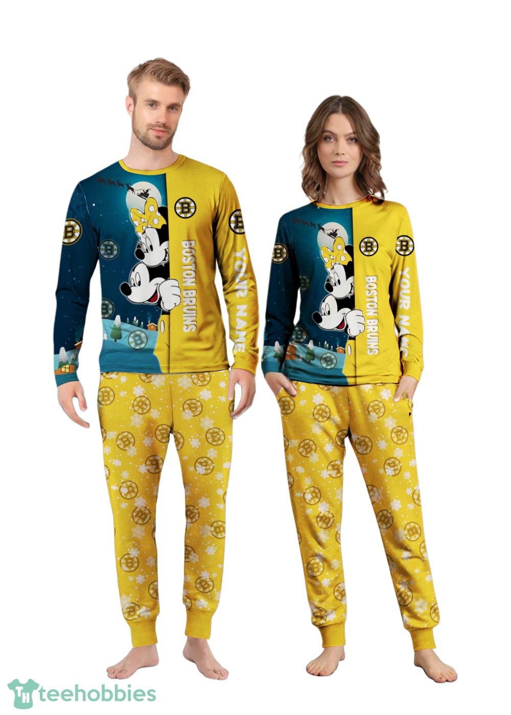 Create Cherished Memories with a Custom Name Boston Bruins Cartoon Mouse Couple Christmas Matching Pajamas Set
