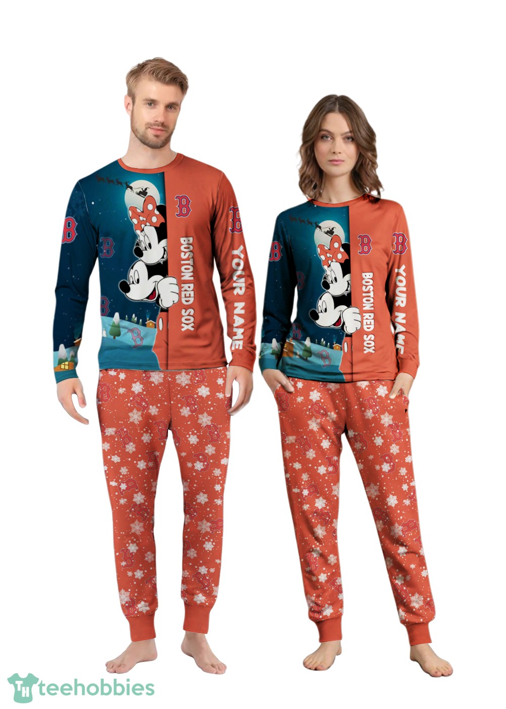 Order your Custom Name Boston Red Sox Cartoon Mouse Couple Christmas Matching Pajamas Set today and create lasting memories this holiday season!