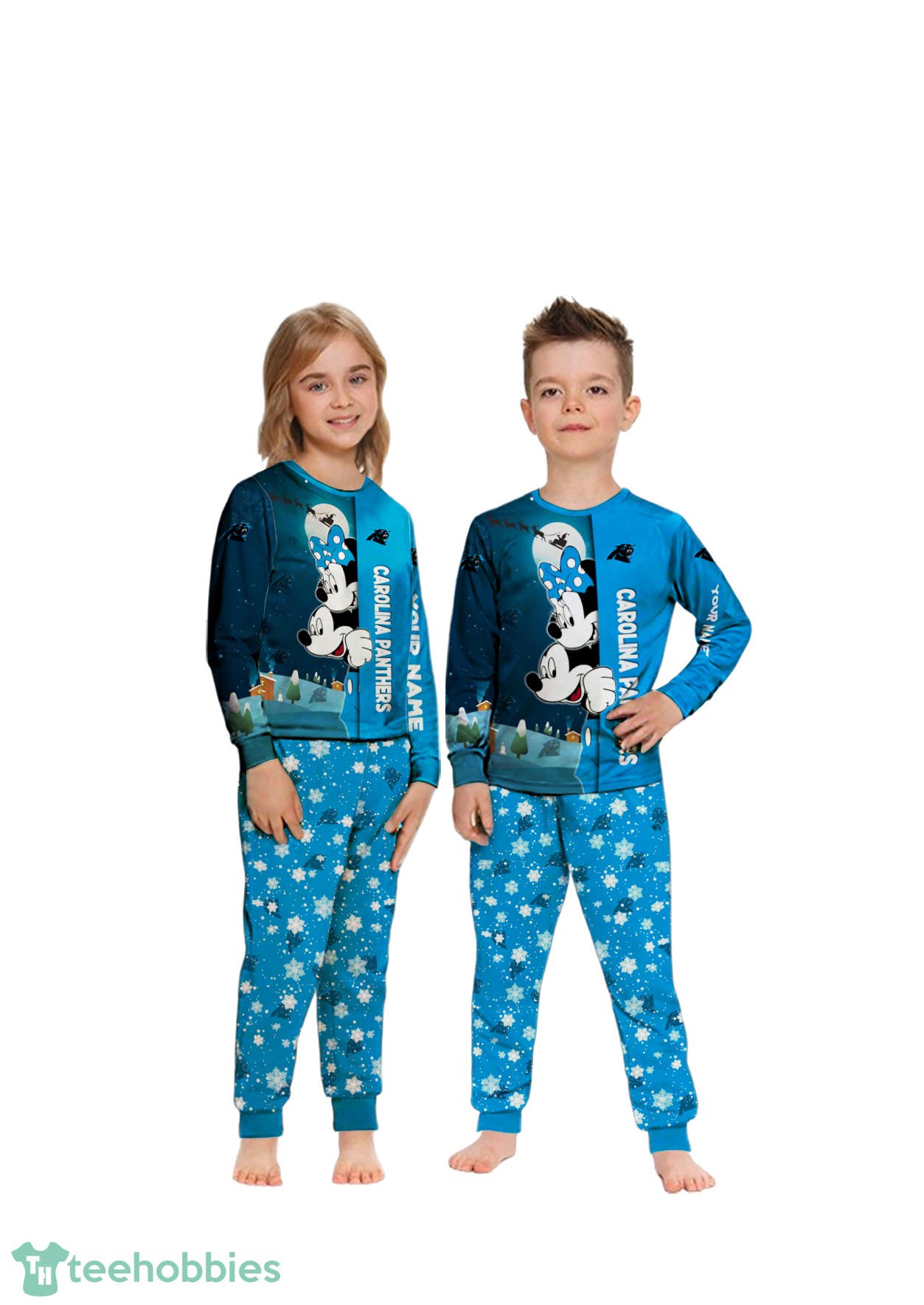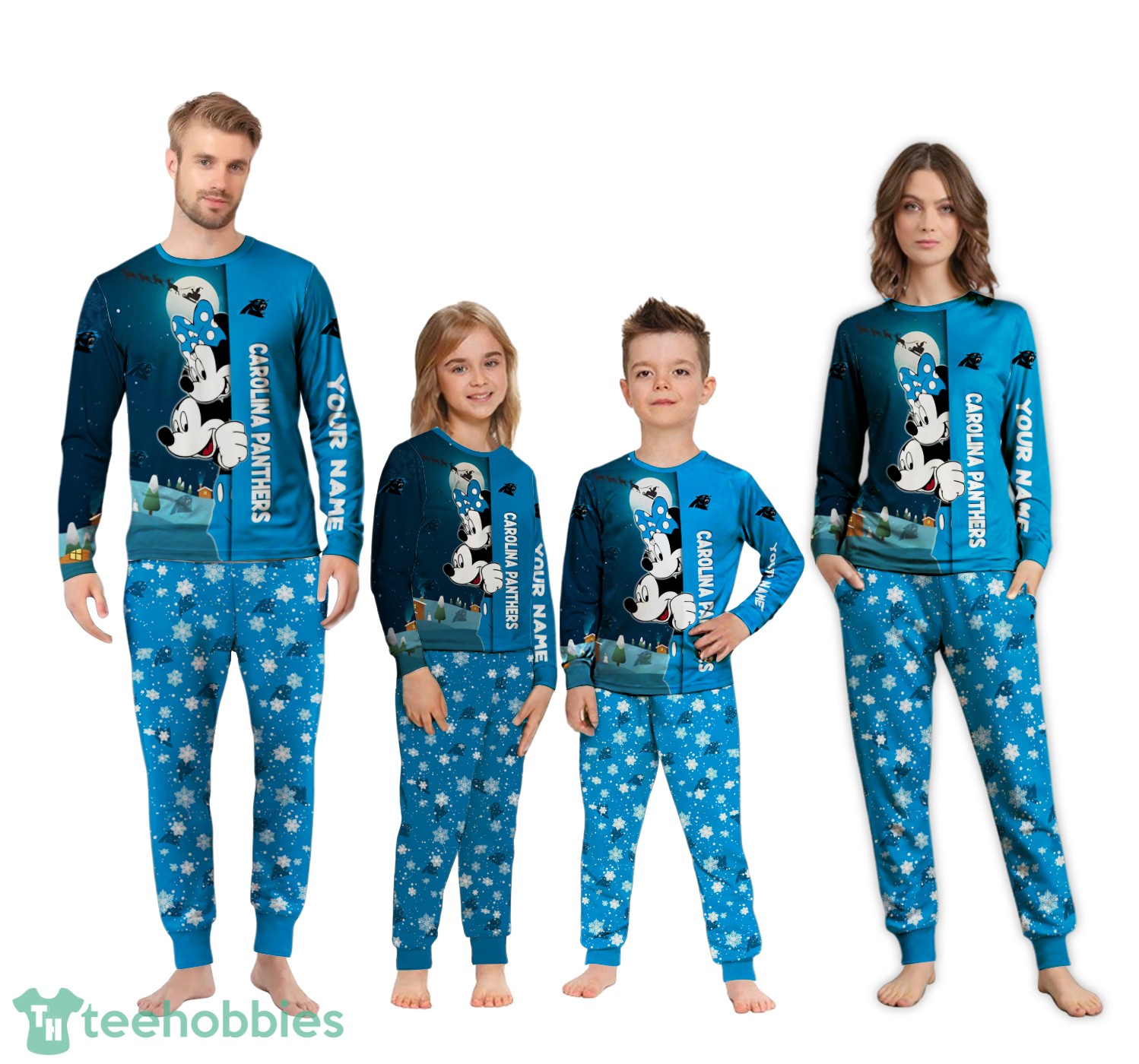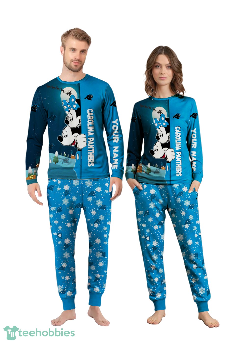 Order your Custom Name Carolina Panthers Cartoon Mouse Couple Christmas Matching Pajamas Set today and make this Christmas unforgettable!