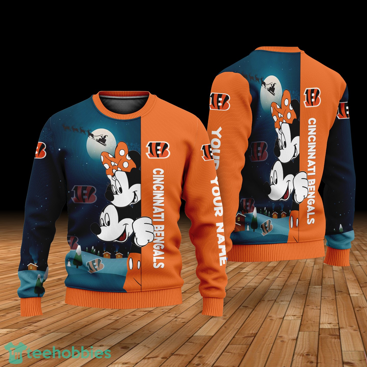 Order your Custom Name Cincinnati Bengals Cartoon Mouse Couple Christmas 3D Sweater today and make this holiday season unforgettable!