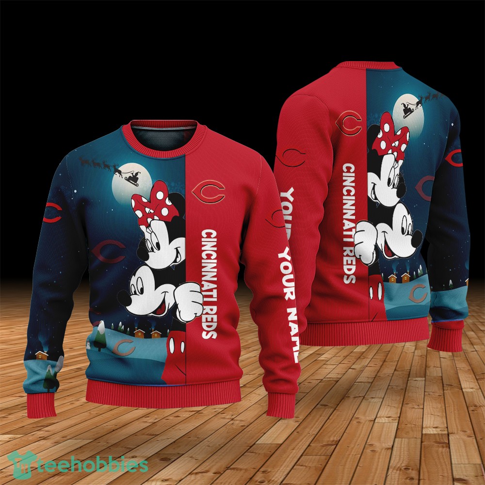 Custom Name Cincinnati Reds Cartoon Mouse Couple Christmas 3D Sweater