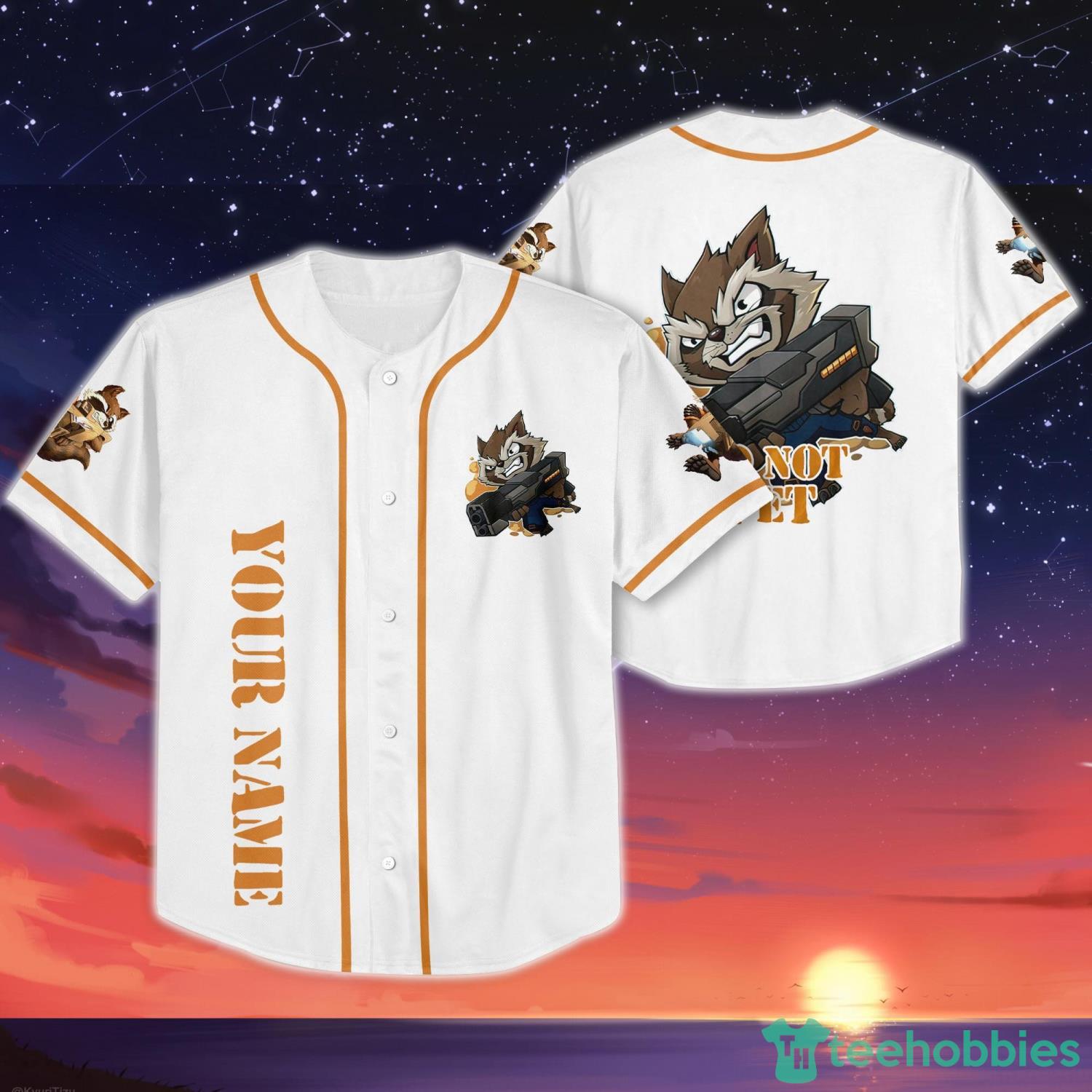 Some of the Custom Name For Disney Fans Rocket Raccoon Do Not Pet Baseball Jersey Shirt photos