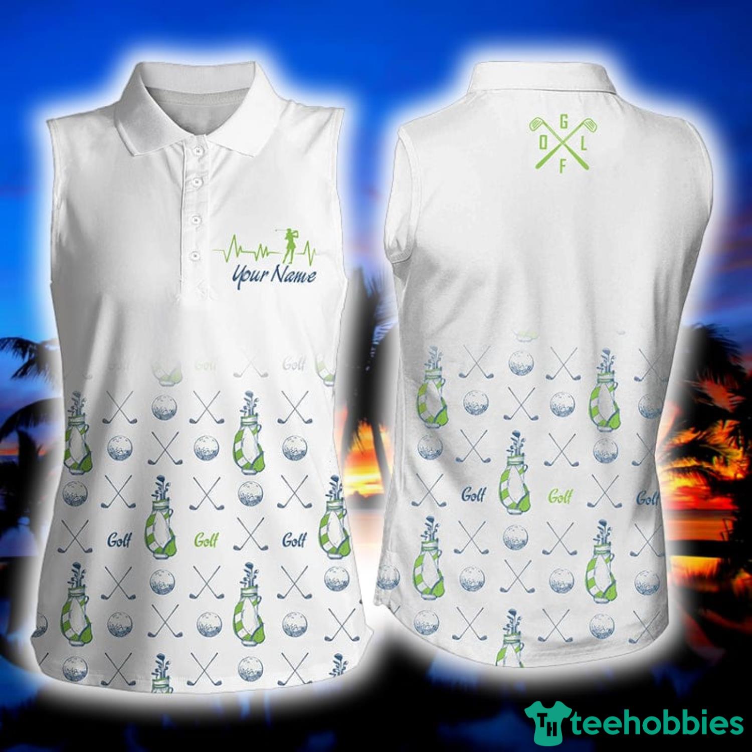 Our Custom Name Golf Clubs Pattern White Golf Tops For Women are the perfect addition to any golfer’s wardrobe. Whether you’re just starting out on the course or you’re a seasoned pro, this top is sure to become a staple in your golfing apparel collection. So why wait? Order yours today and take your golf game to the next level!