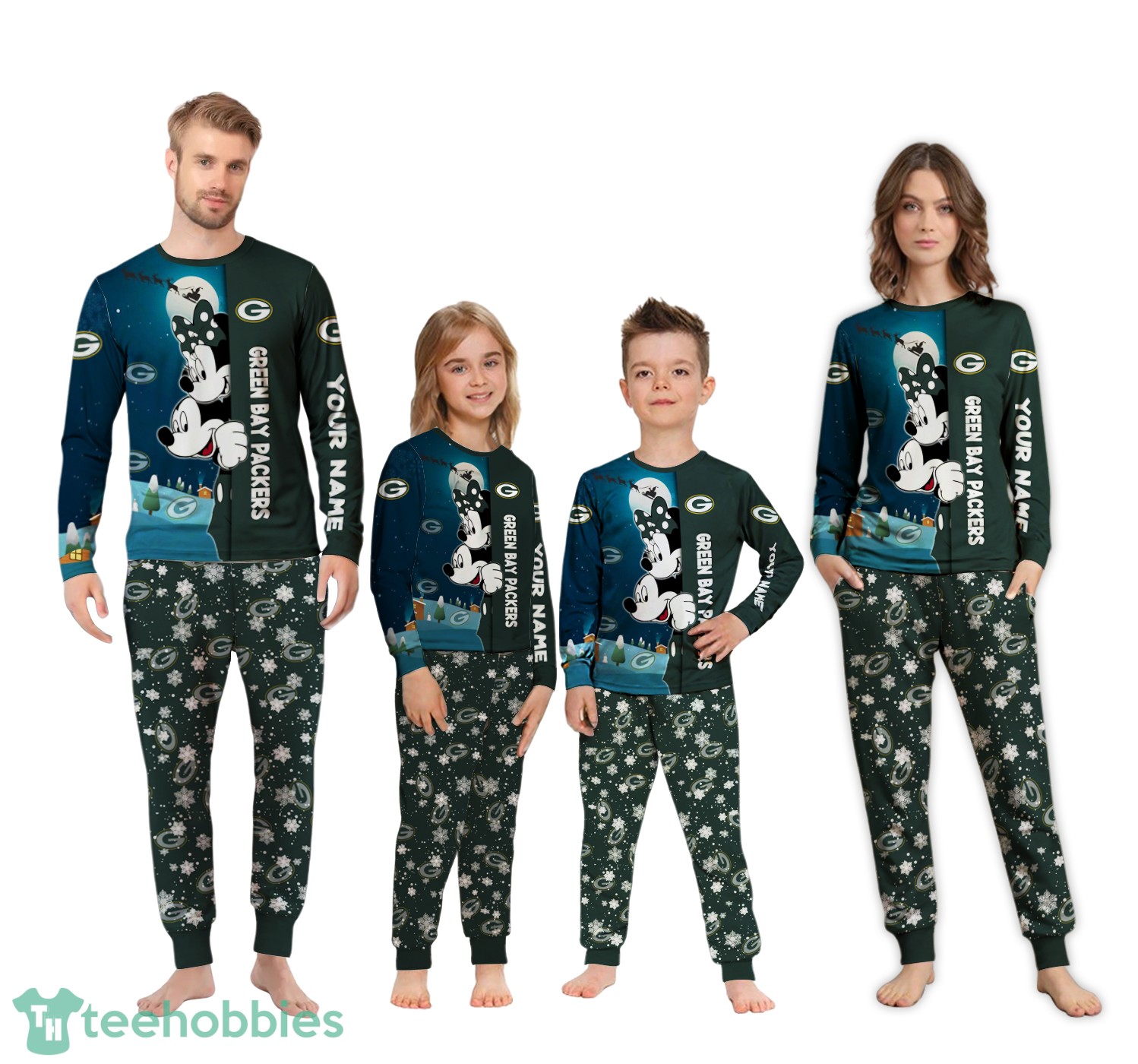 Don’t miss out on the opportunity to make this Christmas extra special! Order your Custom Name Green Bay Packers Cartoon Mouse Couple Christmas Matching Pajamas Set today and create lasting memories with your family! These **NFL Christmas pajamas** will surely bring smiles and warmth to your holiday celebrations.