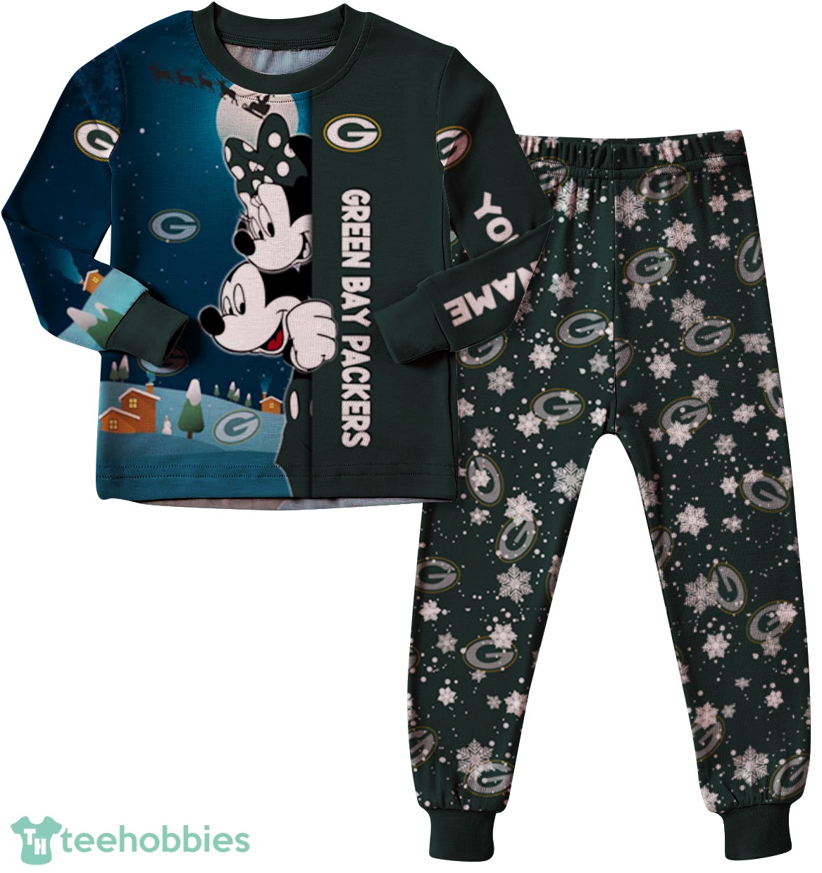 Create Cherished Memories with a Custom Name Green Bay Packers Cartoon Mouse Couple Christmas Matching Pajamas Set