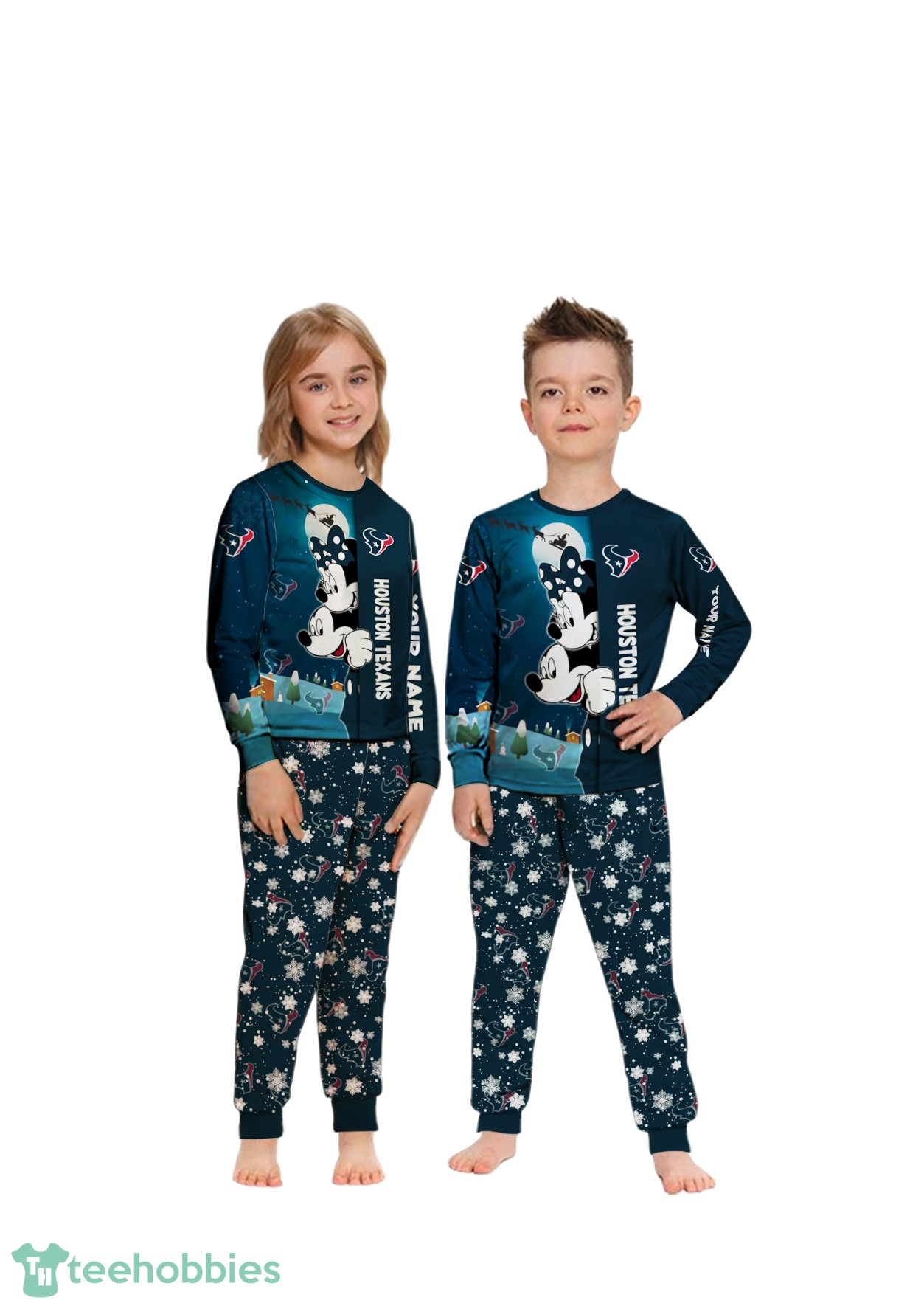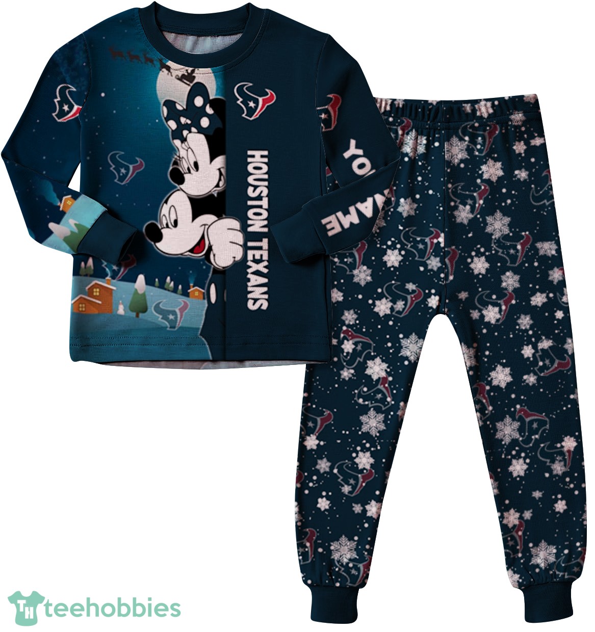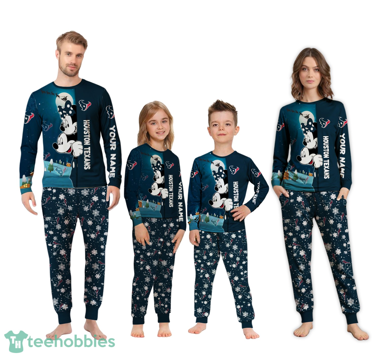 Custom Name Houston Texans Cartoon Mouse Couple Christmas Matching Pajamas Set