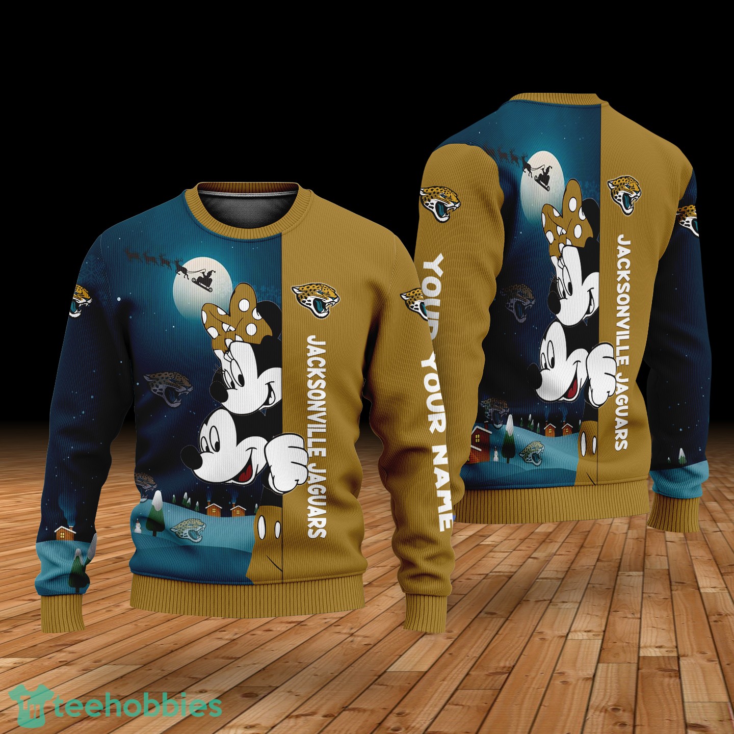 Custom Name Jacksonville Jaguars Cartoon Mouse Couple Christmas 3D Sweater