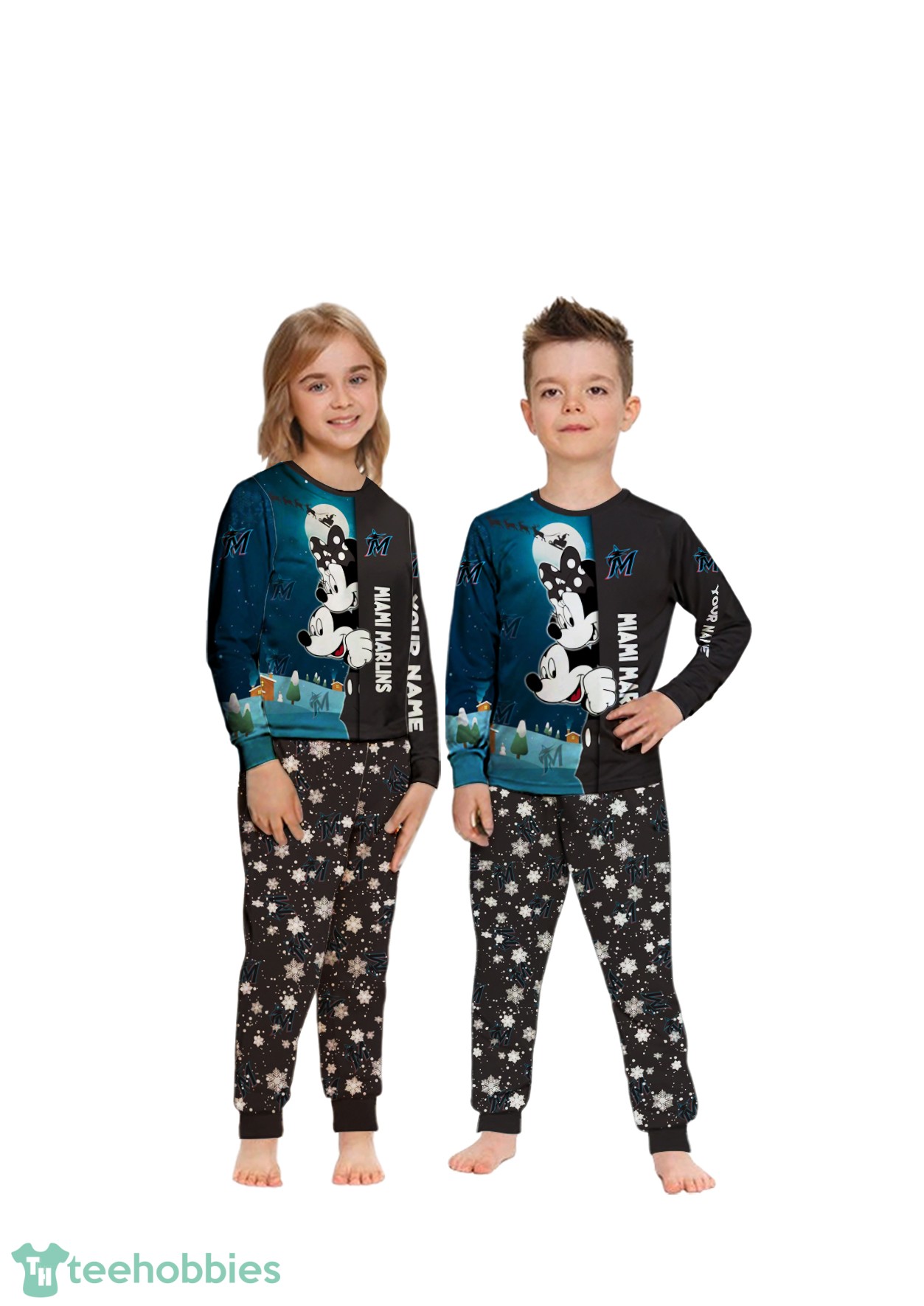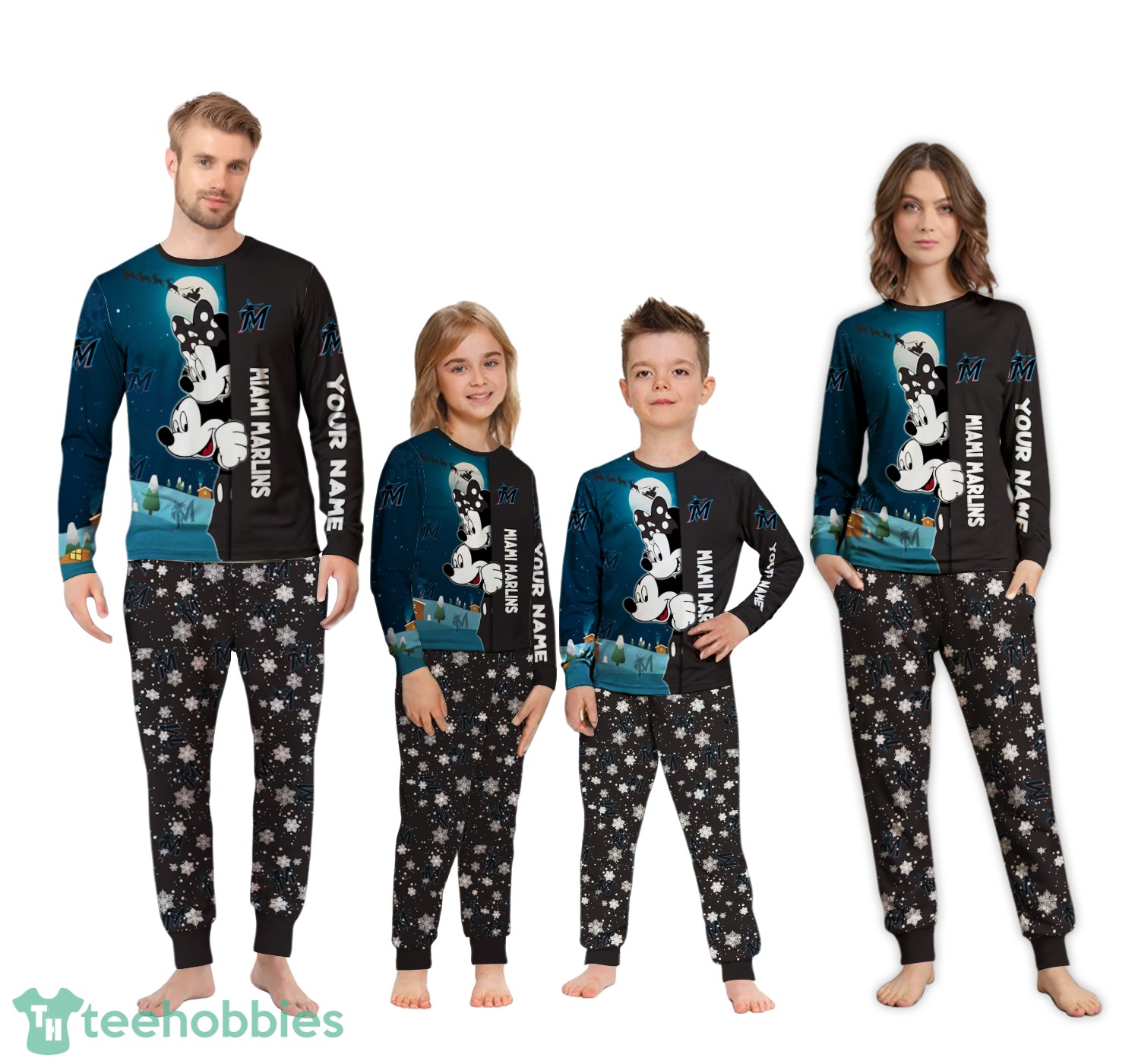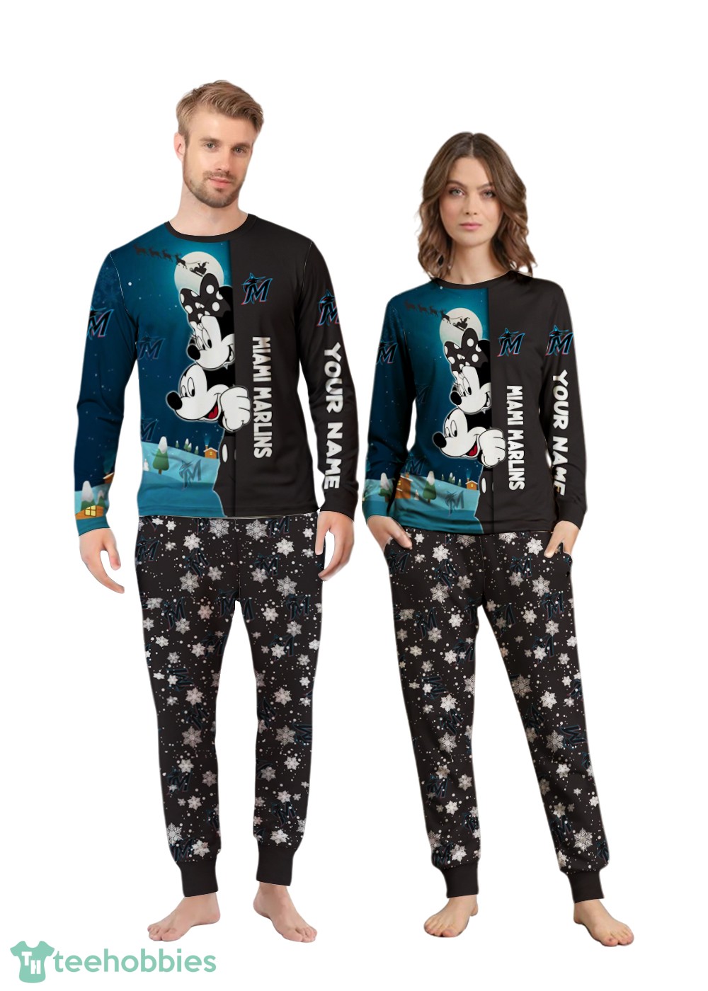 Custom Name Miami Marlins Cartoon Mouse Couple Christmas Matching Pajamas Set