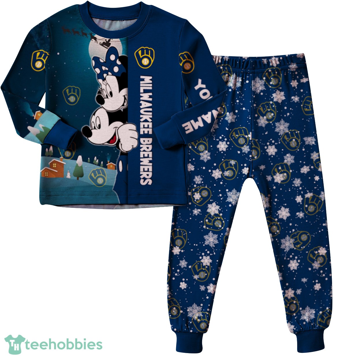 Custom Name Milwaukee Brewers Cartoon Mouse Couple Christmas Matching Pajamas Set