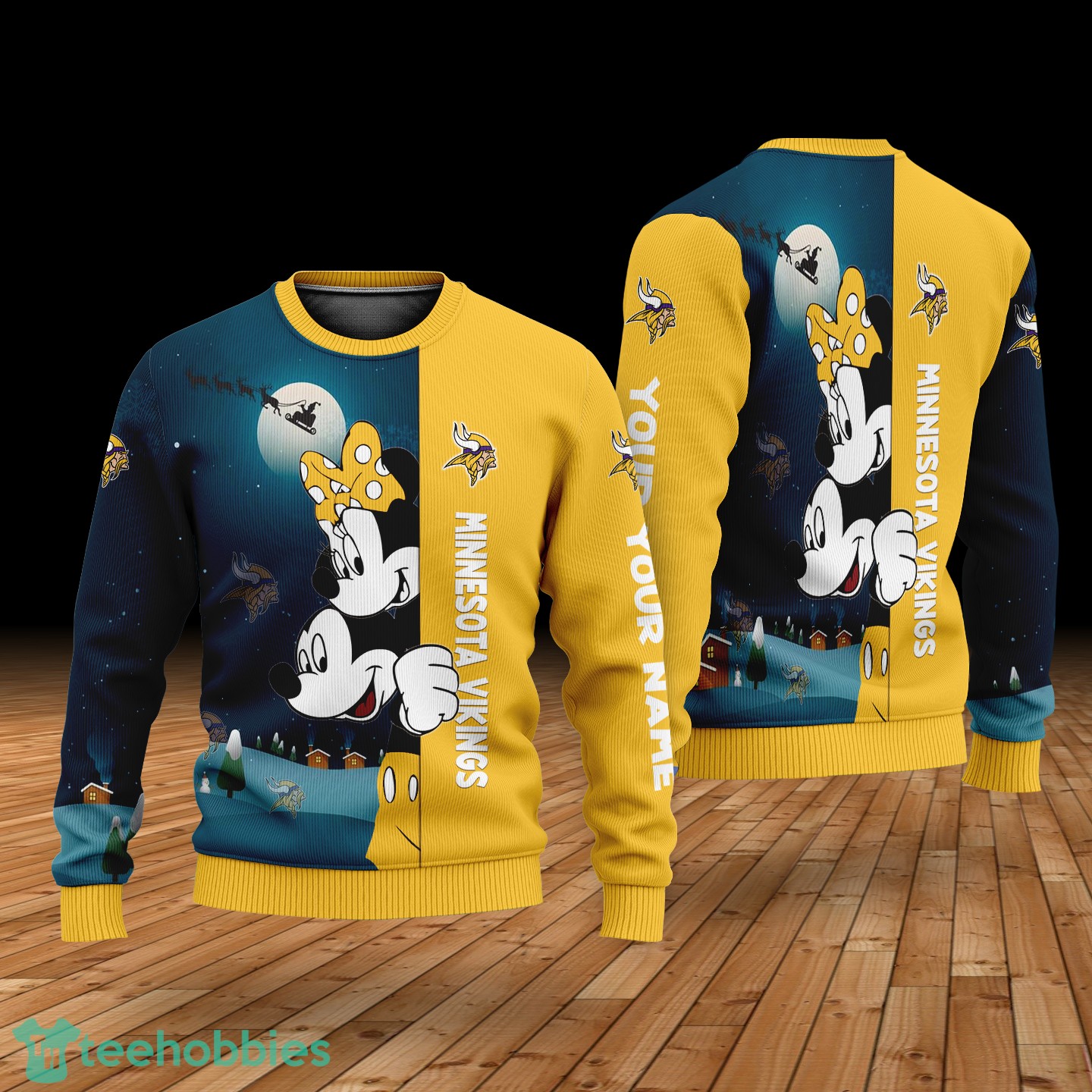 Don’t miss out on the opportunity to showcase your **Vikings fandom** in style this Christmas. Order your Custom Name Minnesota Vikings Cartoon Mouse Couple Christmas 3D Sweater today and make this holiday season unforgettable!