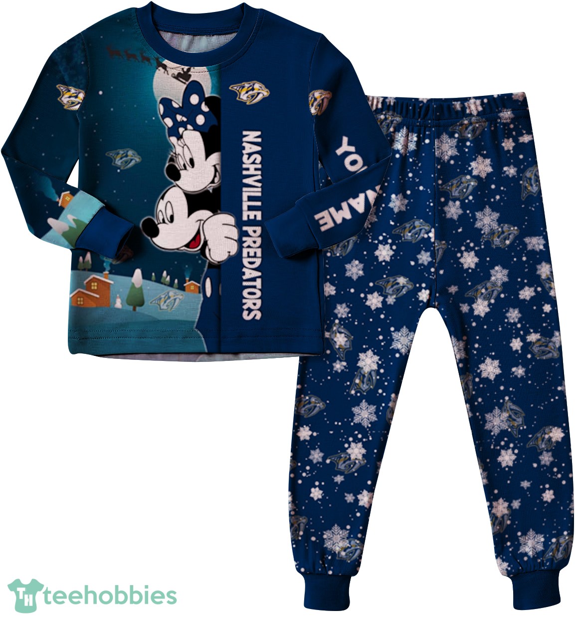 - All-Over Print: Features a delightful Nashville Predators themed cartoon mouse couple design, perfect for holiday pajamas.