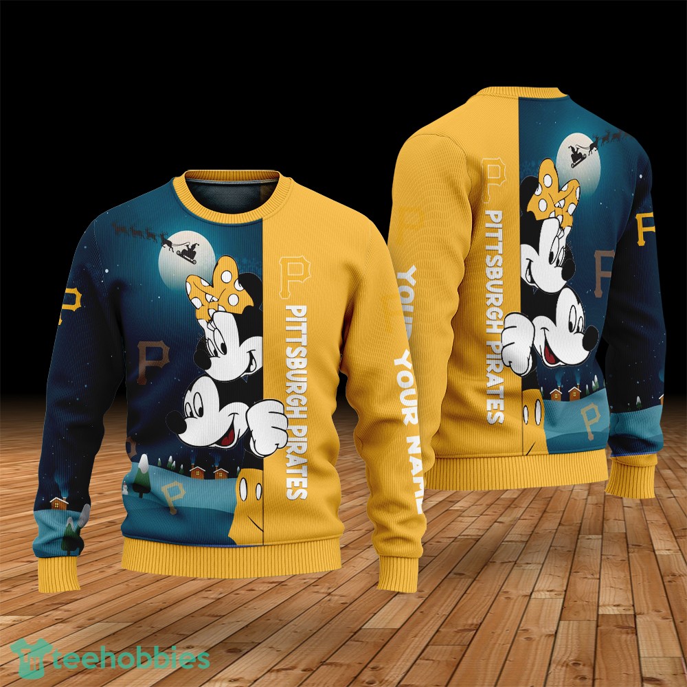 Custom Name Pittsburgh Pirates Cartoon Mouse Couple Christmas 3D Sweater