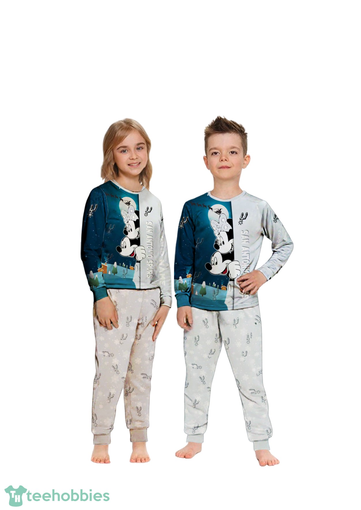 Get ready for a cozy and spirited Christmas morning with our Custom Name San Antonio Spurs Cartoon Mouse Couple Christmas Matching Pajamas Set. These festive matching pajamas are the perfect way for the whole family, including the little ones, to celebrate the holidays while showcasing their love for the San Antonio Spurs. Imagine delightful Christmas morning photos featuring your family in these adorable and personalized Christmas PJs!