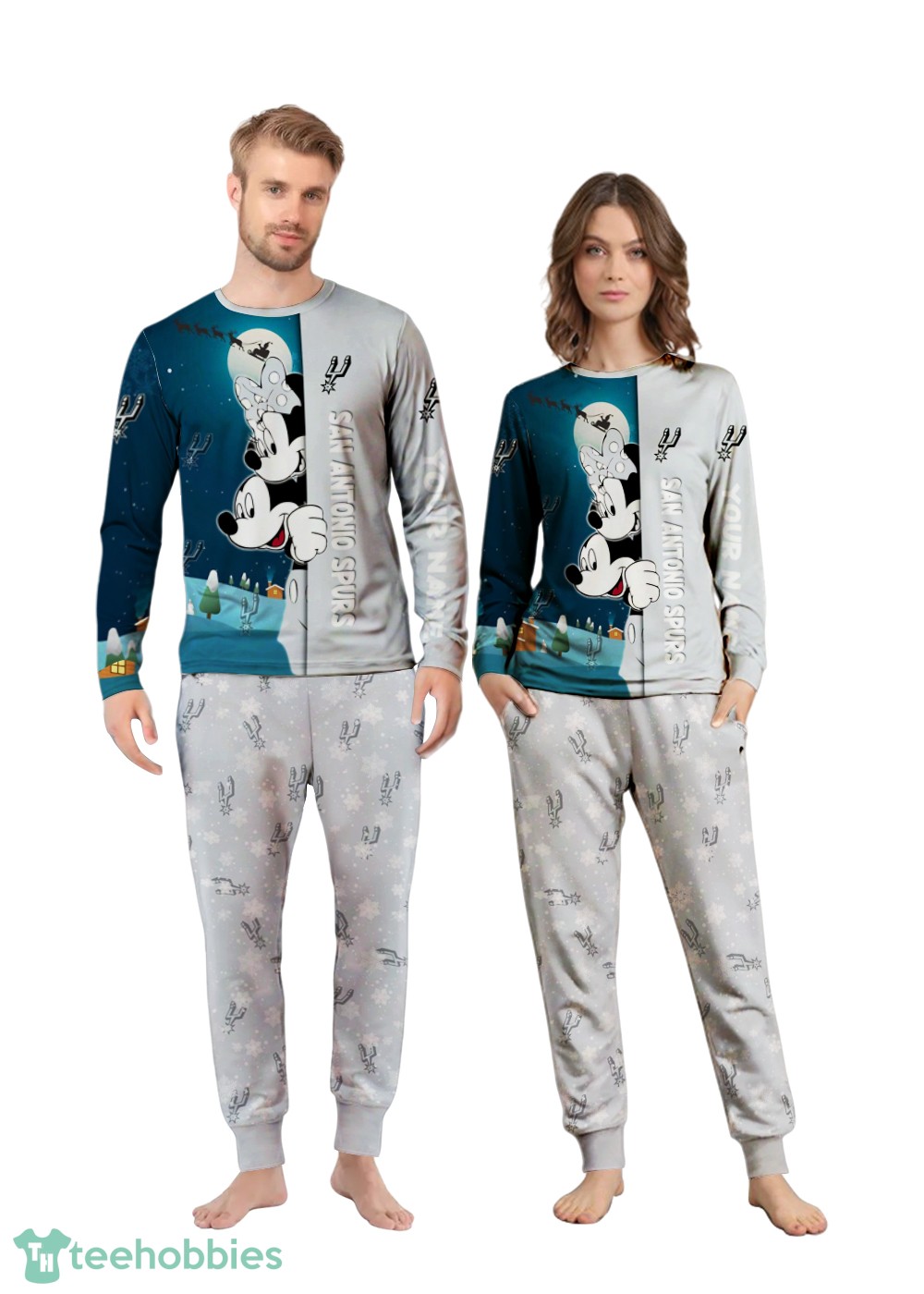 Don’t miss out on the opportunity to make this Christmas extra special with our Custom Name San Antonio Spurs Cartoon Mouse Couple Christmas Matching Pajamas Set.