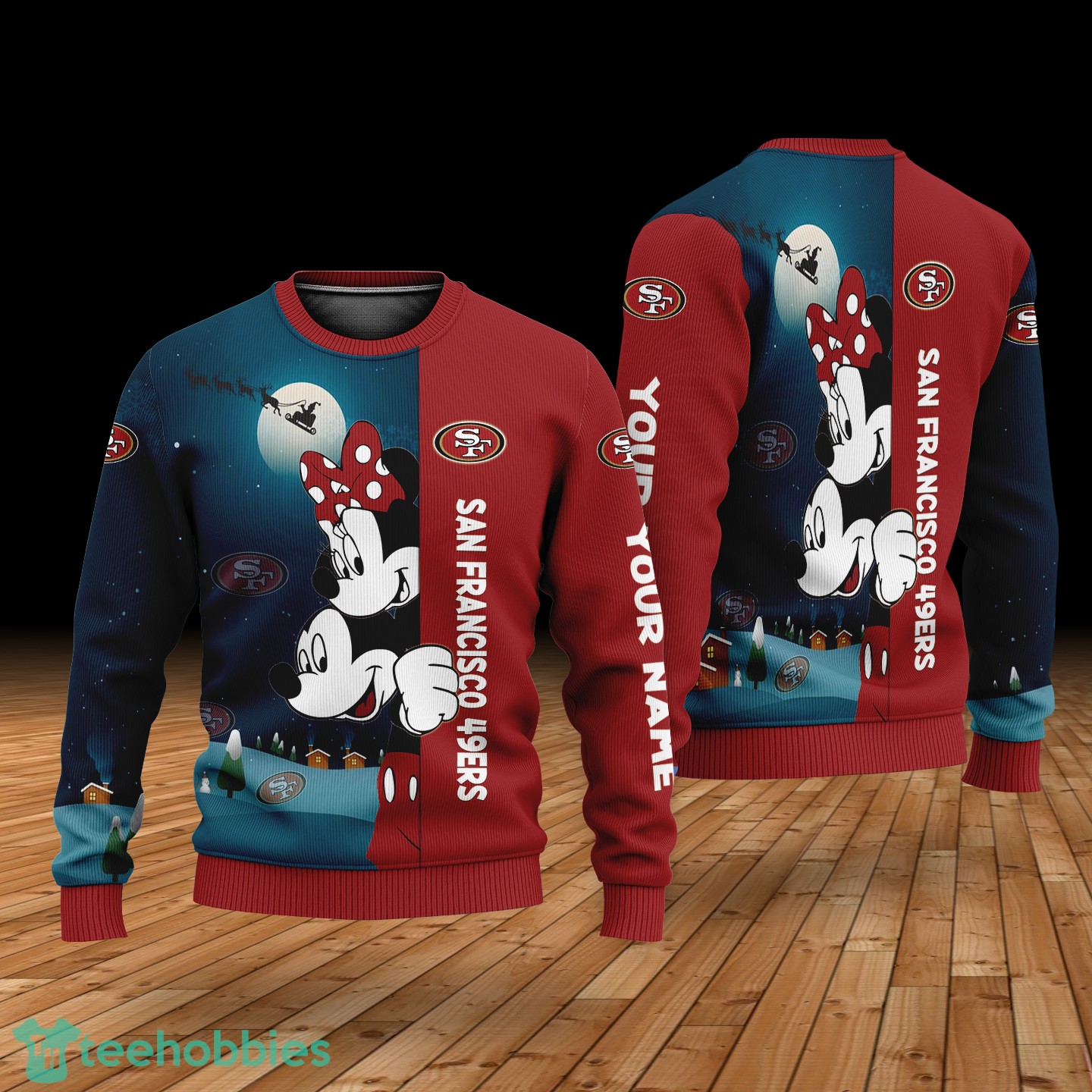 Don’t miss out on this exceptional fan apparel! Order your Custom Name San Francisco 49ers Cartoon Mouse Couple Christmas 3D Sweater today and celebrate the holidays in style. Buy Now and spread the joy!