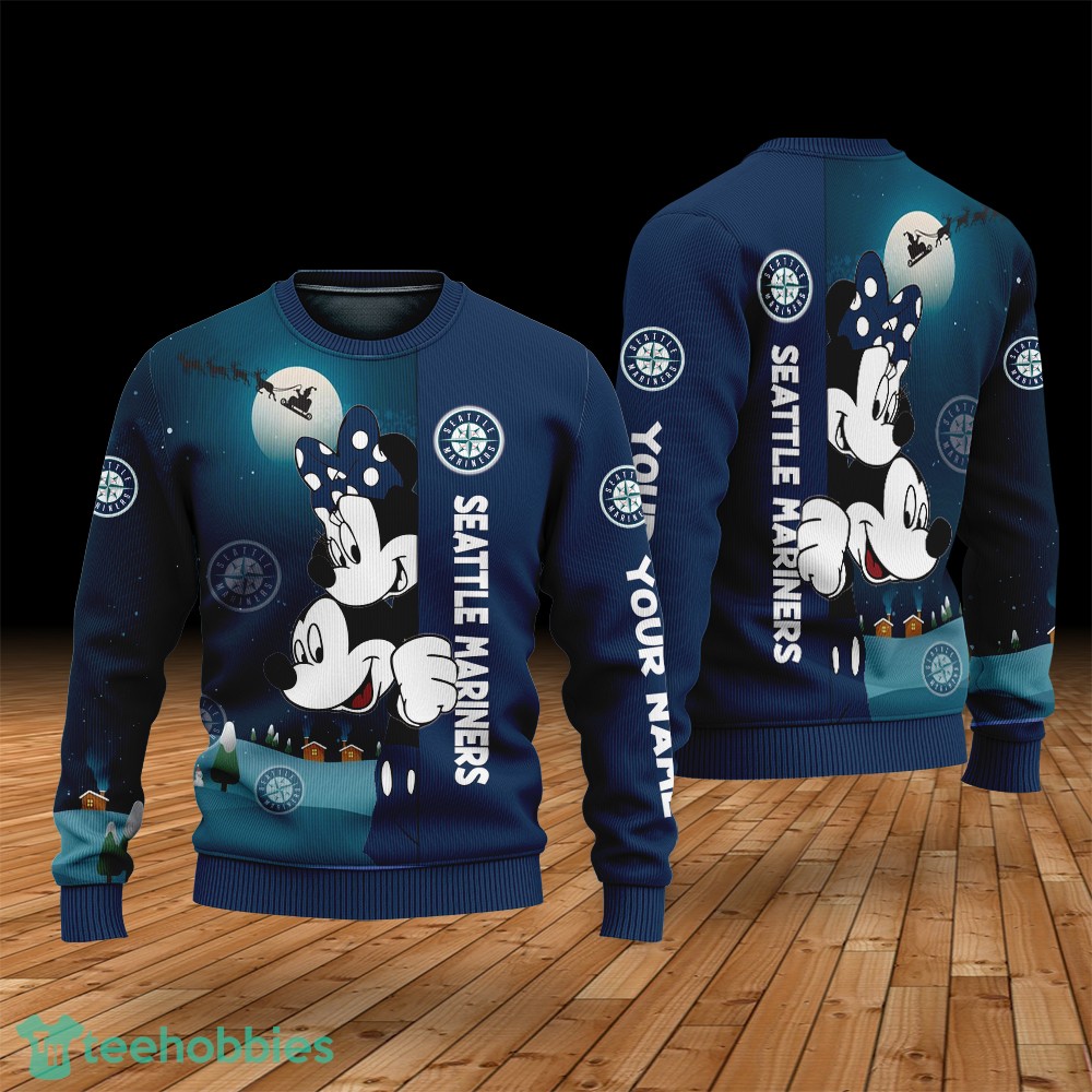 Order your Custom Name Seattle Mariners Cartoon Mouse Couple Christmas 3D Sweater today and create unforgettable holiday memories!