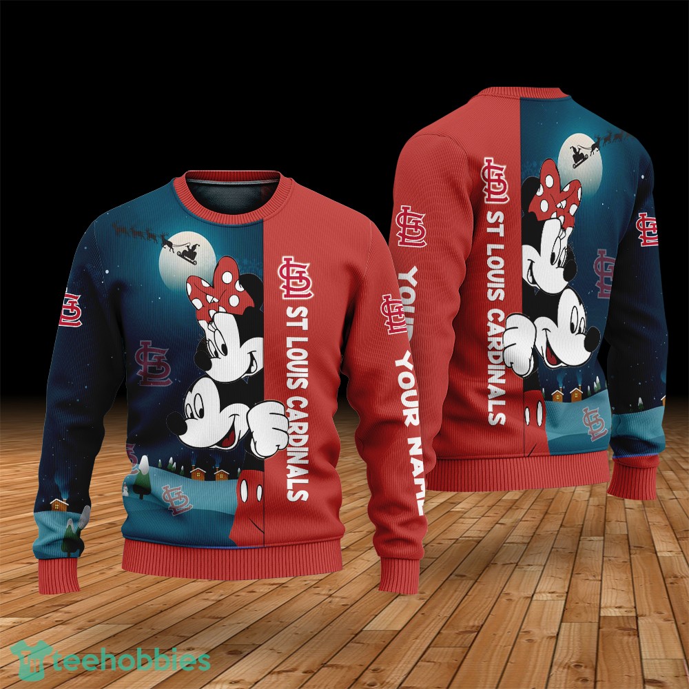 Order your Custom Name St Louis Cardinals Cartoon Mouse Couple Christmas 3D Sweater today!