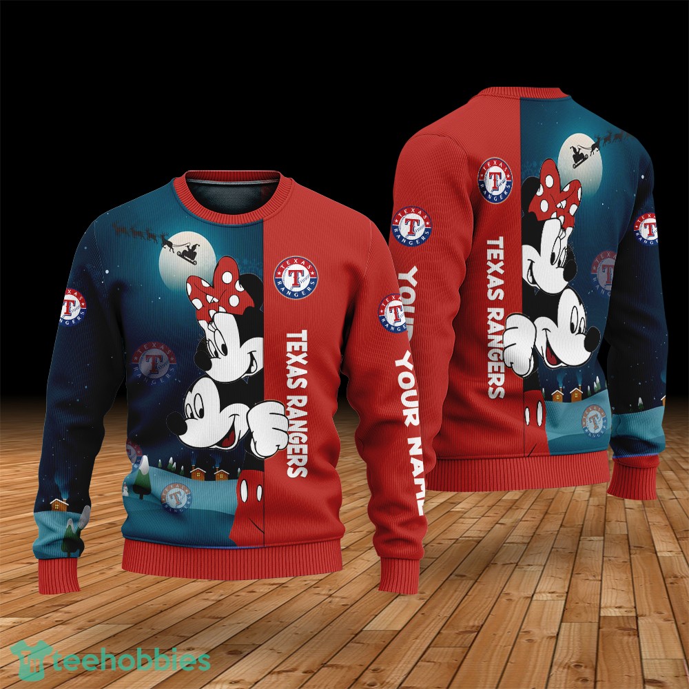 Custom Name Texas Rangers Cartoon Mouse Couple Christmas 3D Sweater