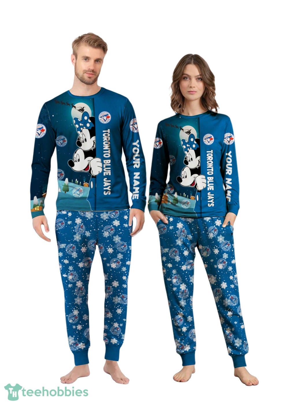 Order your Custom Name Toronto Blue Jays Cartoon Mouse Couple Christmas Matching Pajamas Set today and make this Christmas unforgettable!
