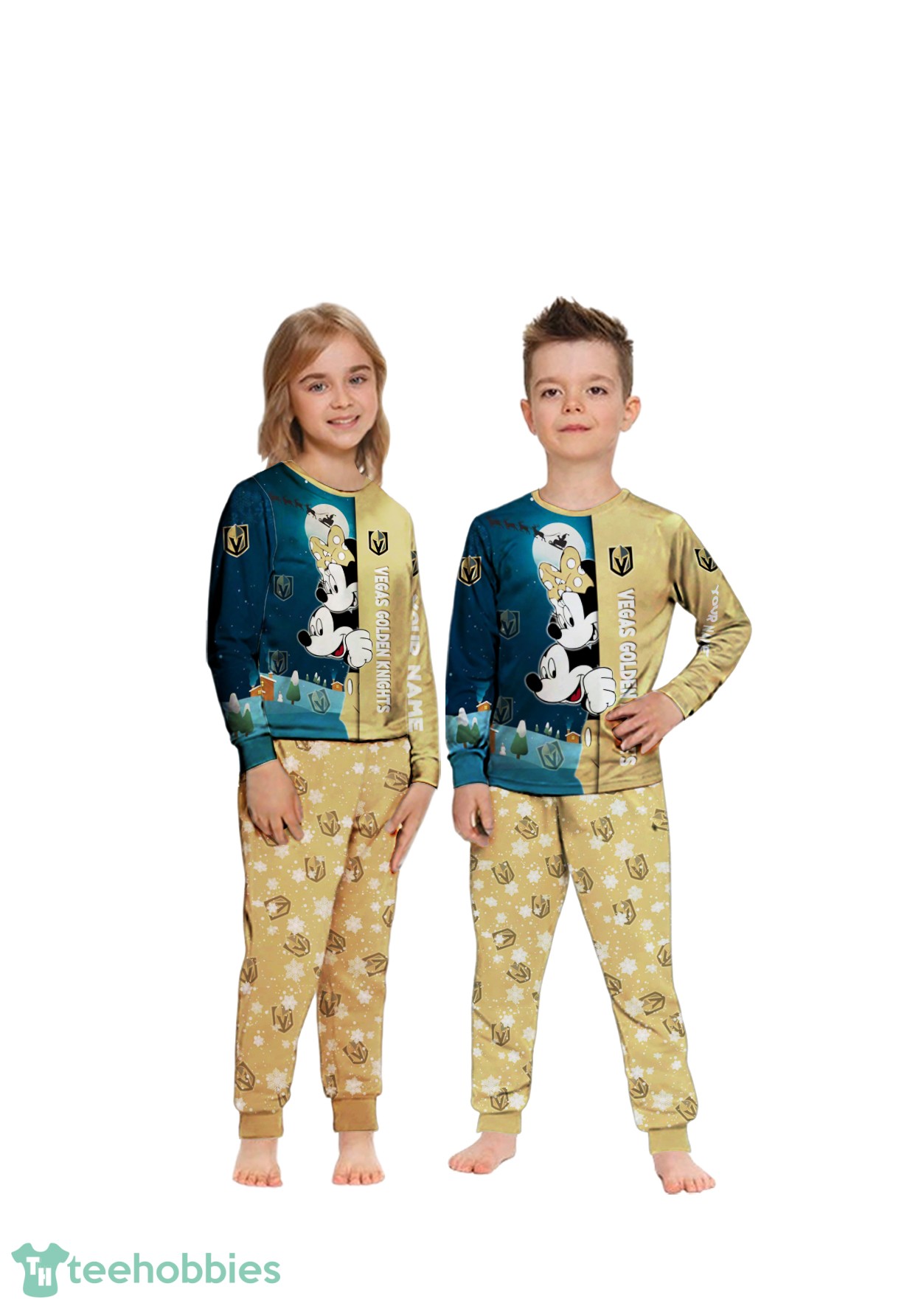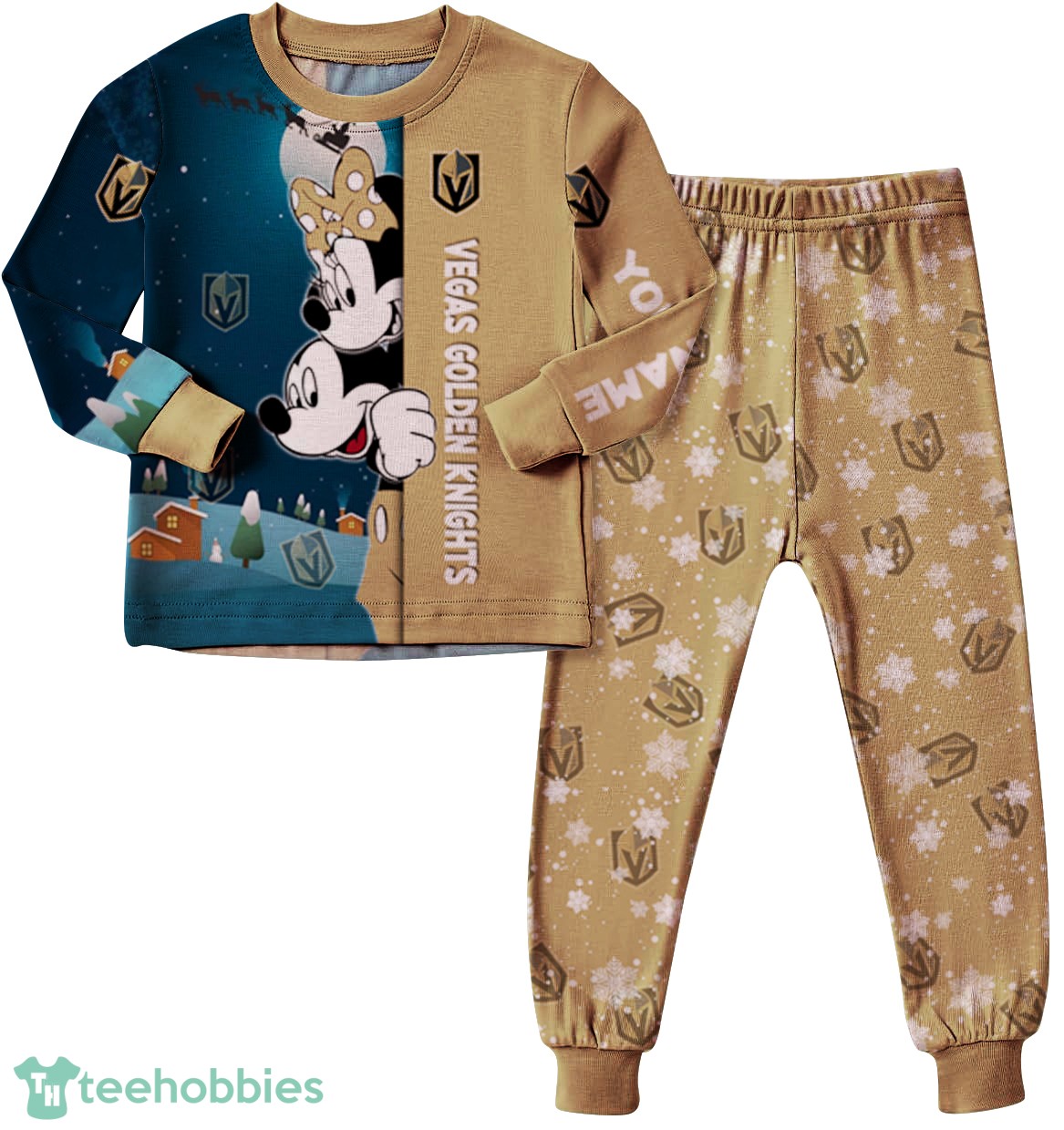 Custom Name Vegas Golden Knights Cartoon Mouse Couple Christmas Matching Pajamas Set