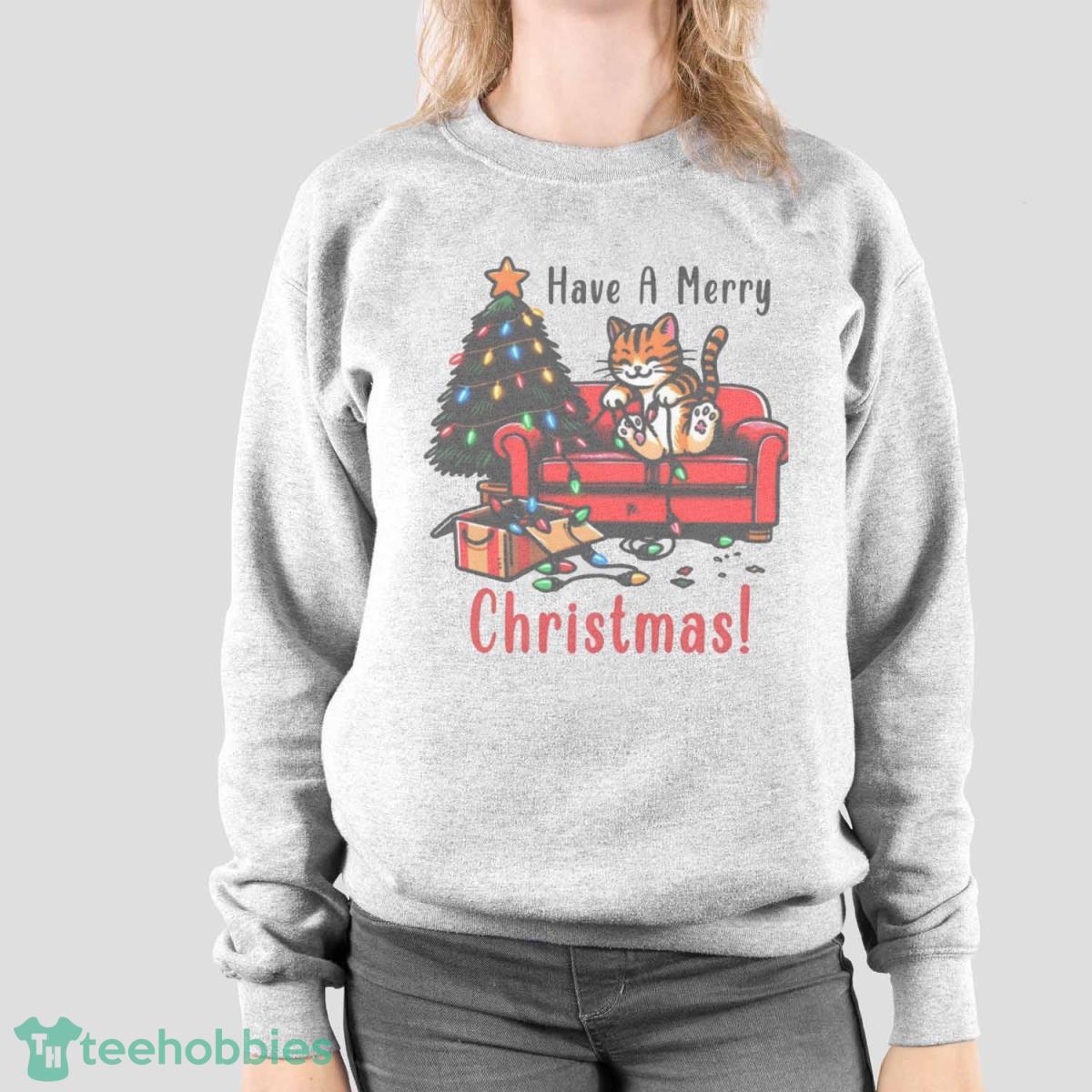 Cute Christmas Cat Sweatshirt Holiday T-shirt Hoodie Sweatshirirt