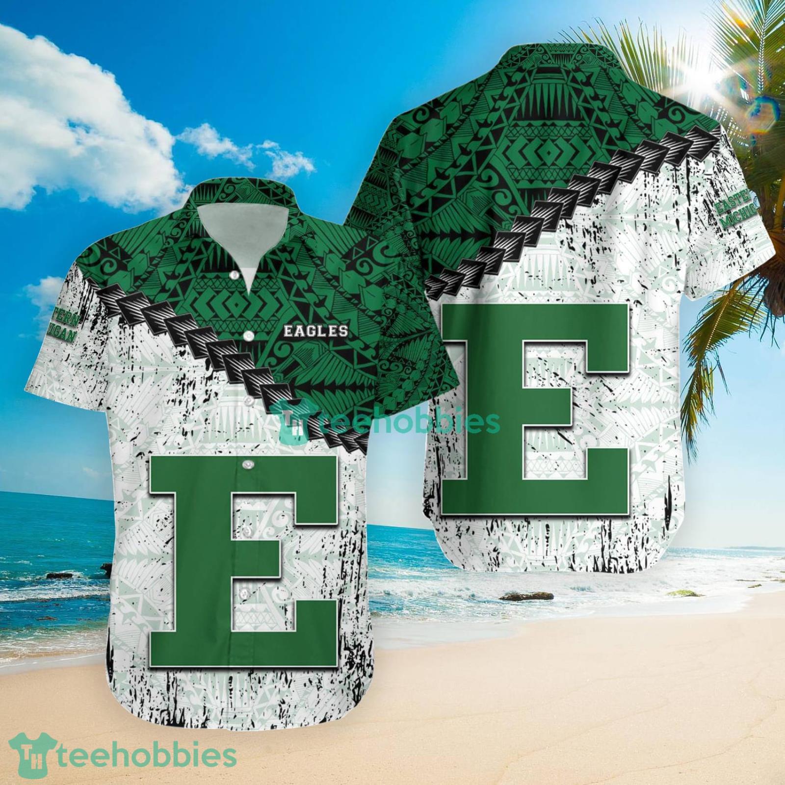 Eastern Michigan Eagles NCAA Grunge Polynesian Tattoo Hawaiian Shirt Suumer Gift For Men And Women