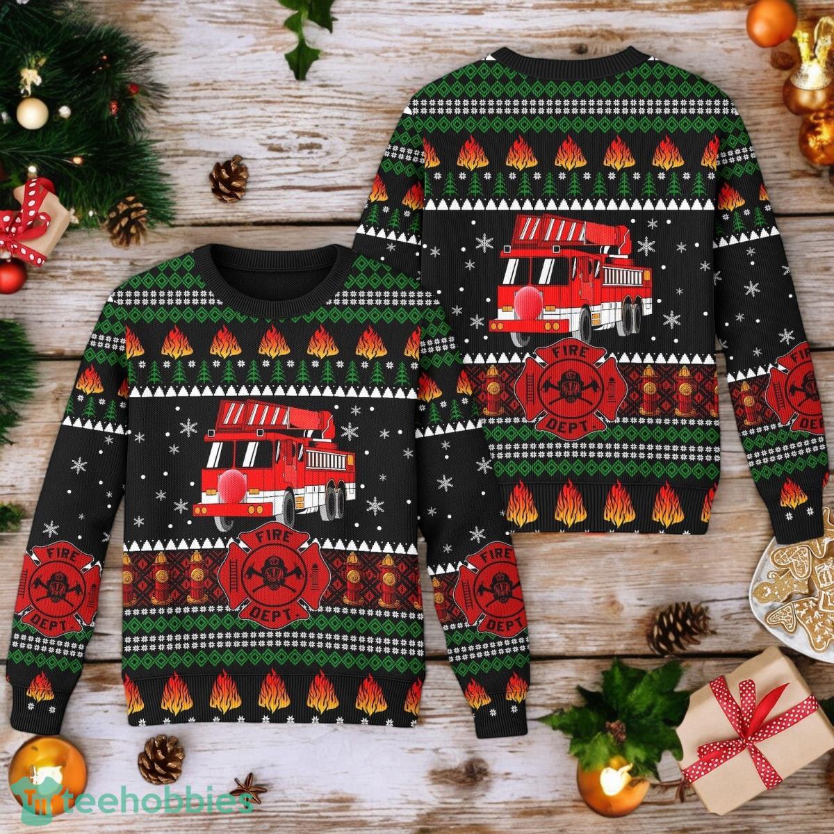 Fireman Ugly Christmas Sweater Firefighter Truck Ugly Christmas Sweater
