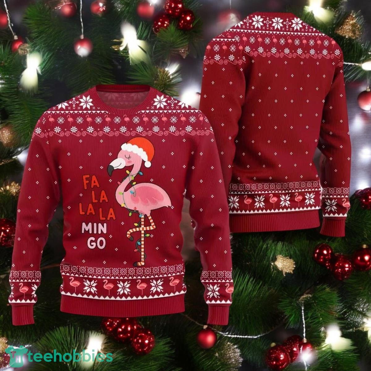 Fla La La Flamingo Christmas Ugly Sweater Funny Santa Hat Xmas Red Sweater