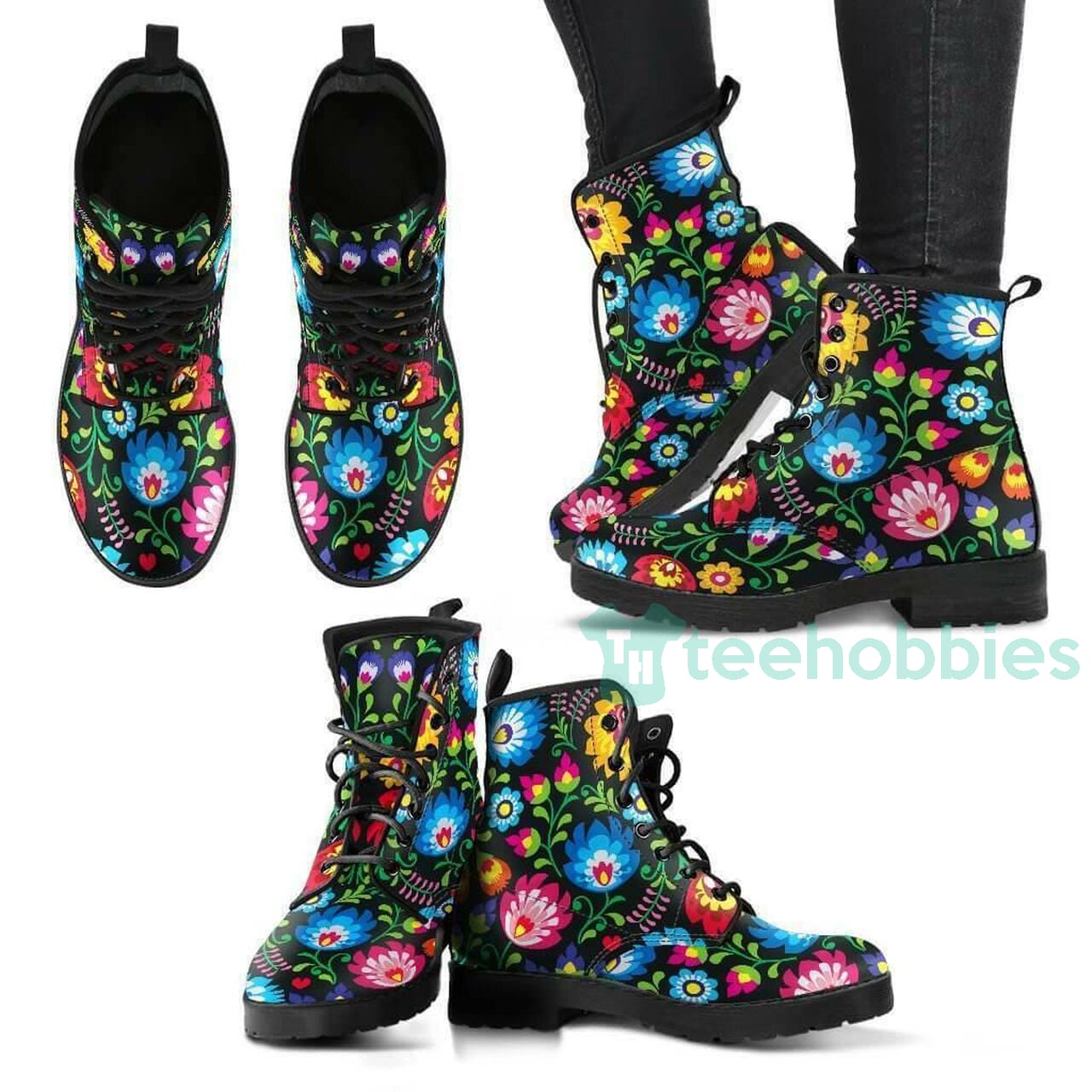 Floral Leather Boots Shoes. The Leather Boot is the perfect everyday walking shoe for men and women who want to look and feel good while they’re on the go. These comfortable, waterproof leather boots have a dual-density EVA sole for optimum support and feature a rubber lug outsol. With an unbeatable combination of style, comfort, and durability, you can count on The Boot to be there with you through your day.