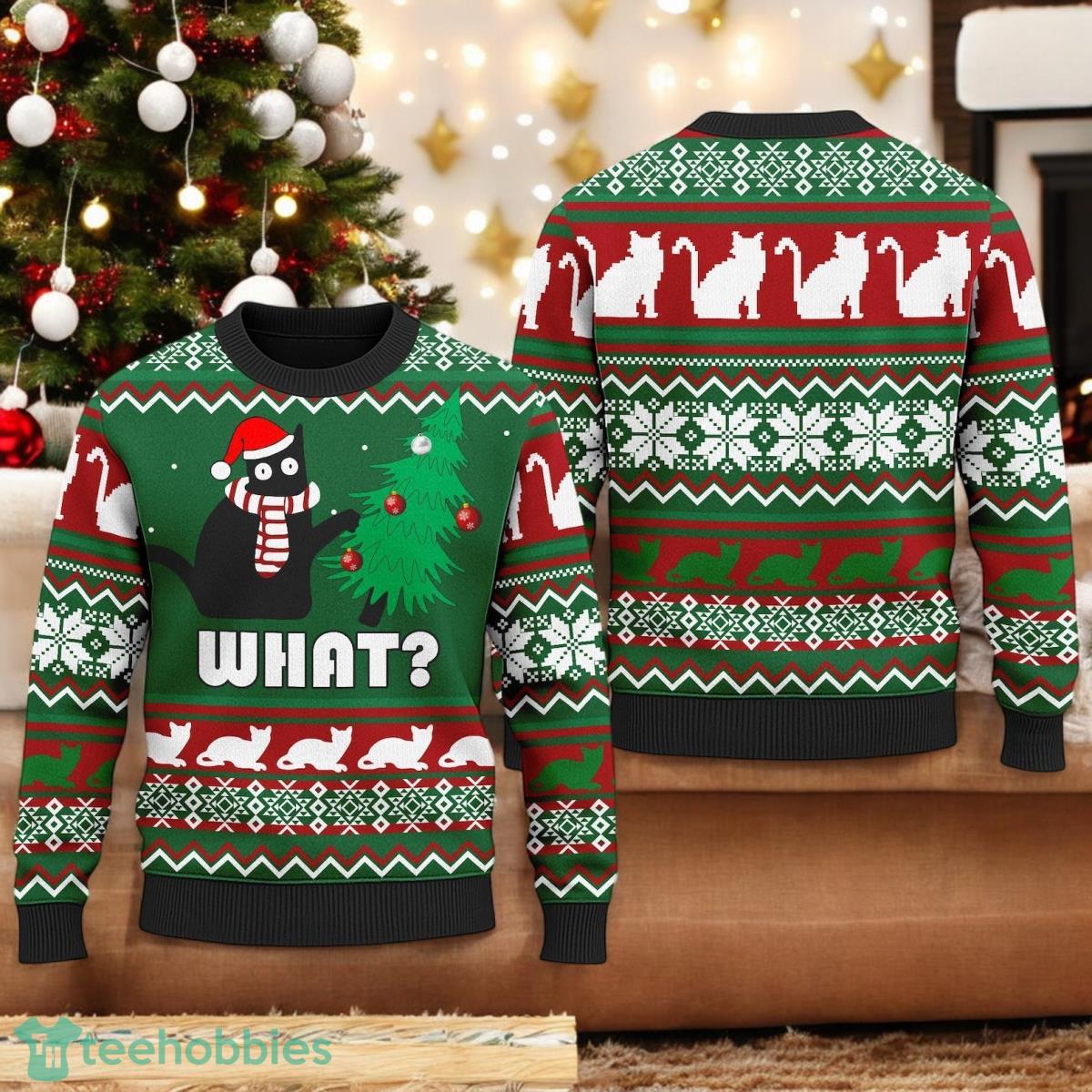 This **cat Christmas sweater** is more than just apparel; it’s a statement of your joyful spirit and love for adorable animals. The comfortable fit and eye-catching design make it a must-have for your **Xmas** collection. Its unique charm makes it a great **holiday gift** idea for friends, family, or even yourself!