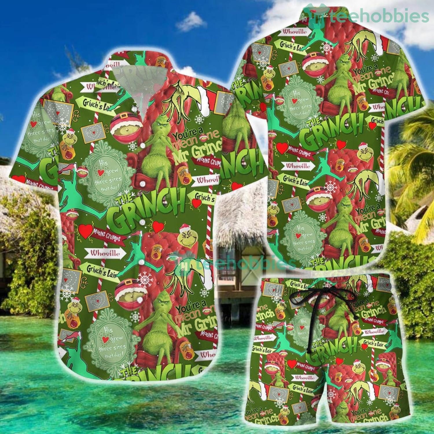 This design is available in a combo Hawaiian shirt & shorts. You can also get it separate. The default option is only one shirt or one pair of shorts. You have chosen a combo to get them both. This combo Funny Grinch Vintage Hawaiian Shirt And Short For Fans is perfect to go to the beach. Get yours now or make a great gift.
